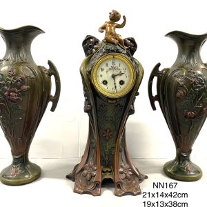 นาฬิกาตั้งโต๊ะพิวเตอร์แจกันคู่สไตล์อ๊าตนูโว่