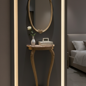 • คอนโซลสไตล์อาร์ตเดโคมีความทันสมัยและโฉบเฉี่ยว มักใช้วัสดุที่มีความเงางาม เช่น กระจกหรือโลหะผสม การออกแบบมีความเรียบง่ายแต่ดูหรูหรา เหมาะสำหรับบ้านที่ต้องการความทันสมัย