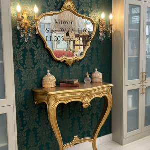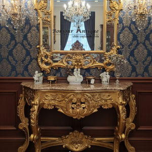 กระจกพร้อมคอนโซลกรอบไม้ทอปหินอ่อนนโปเลียน