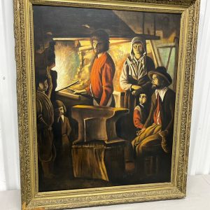รูปสีน้ำมันบนแผ่นไม้กรอบรูปเก่า