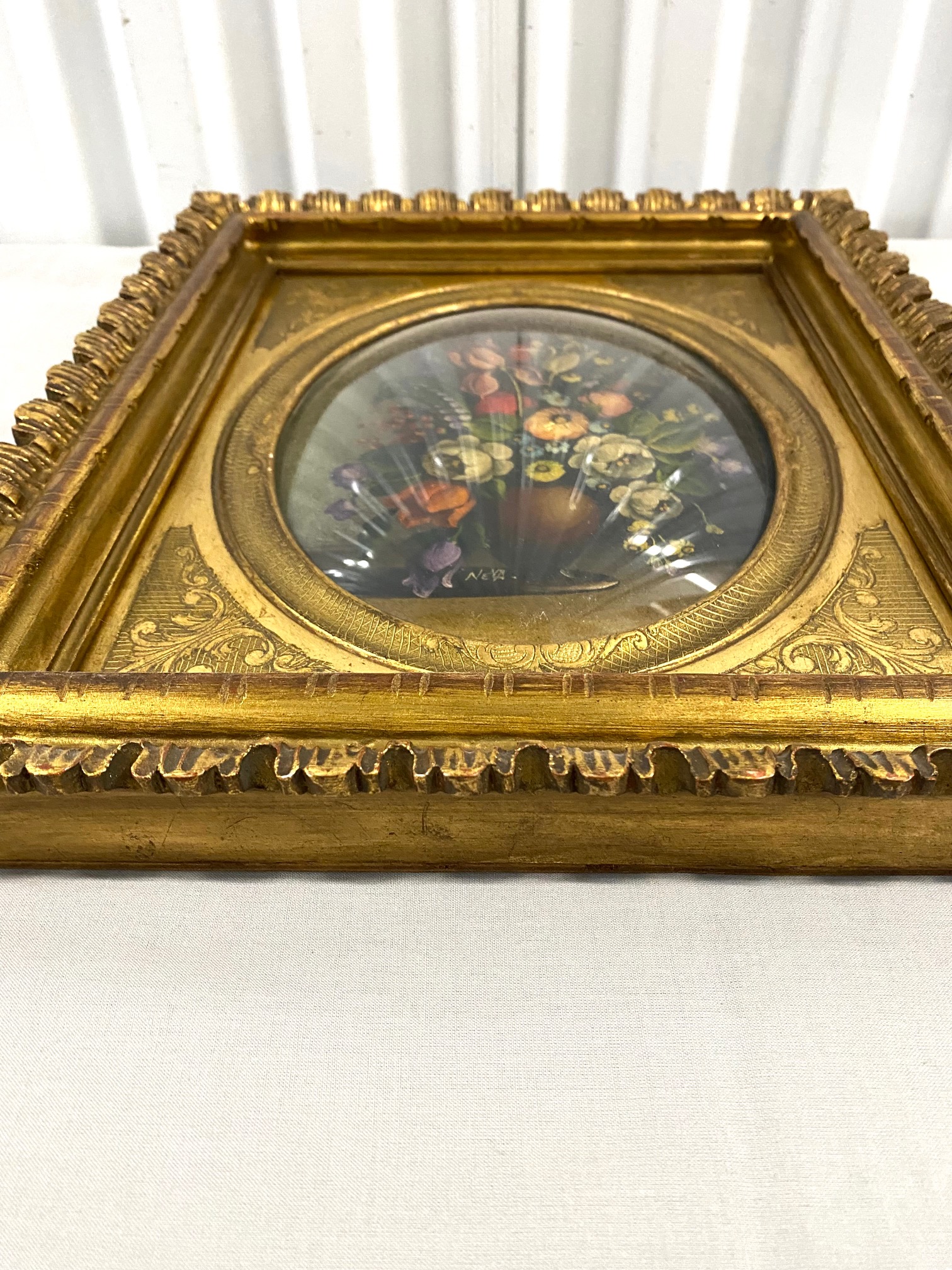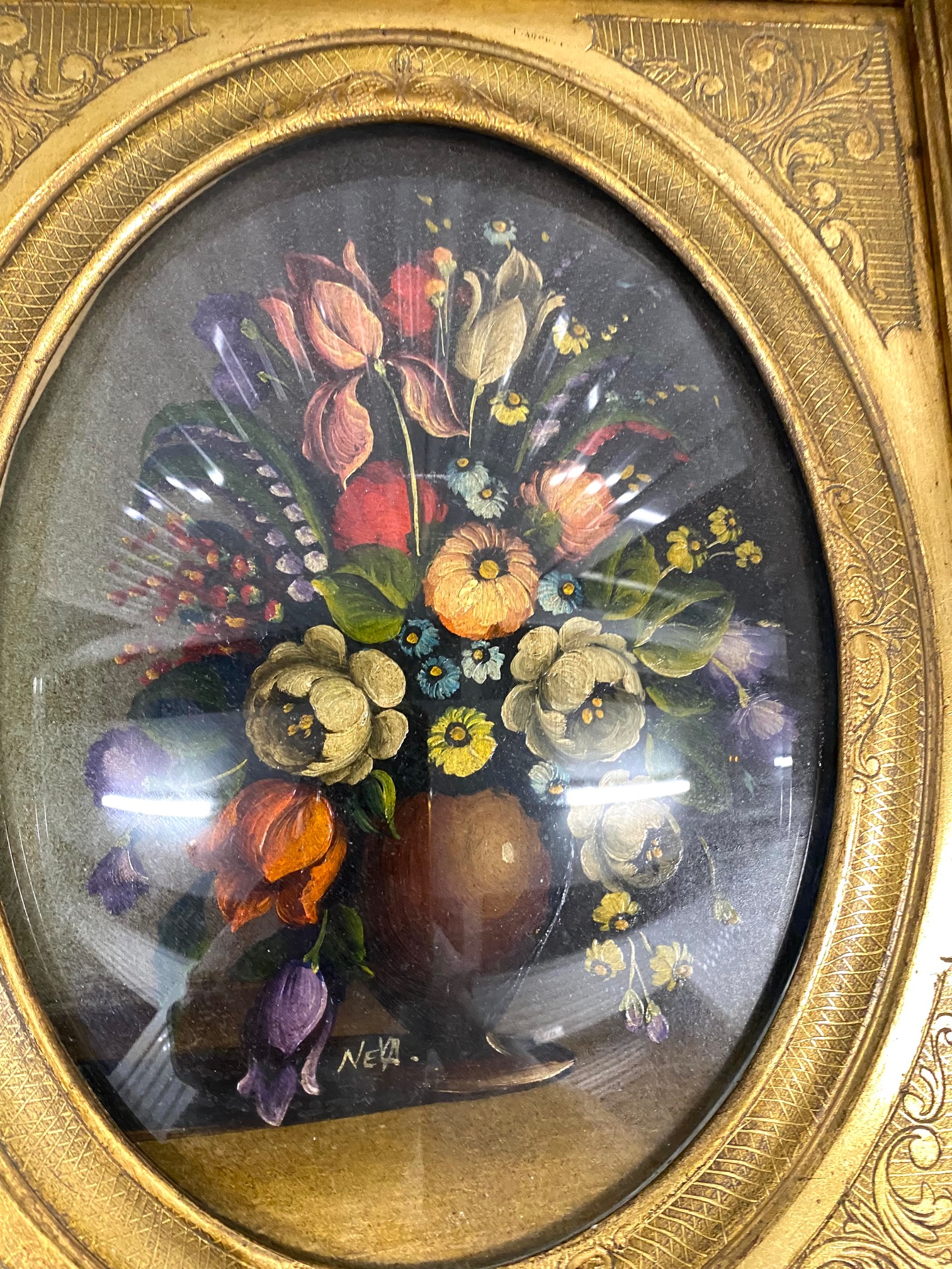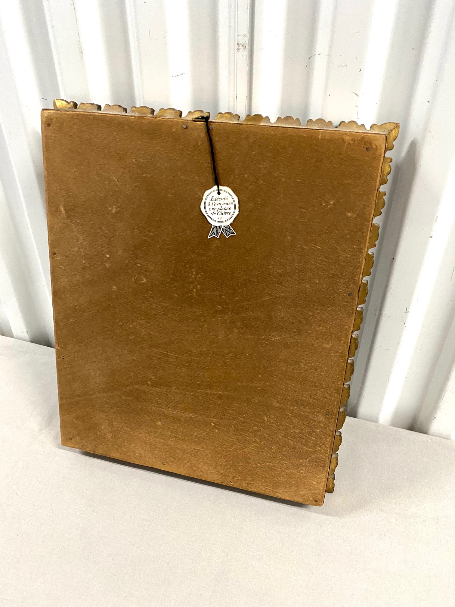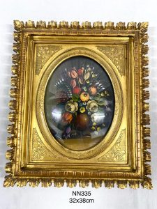 กรอบรูปไม้ติดกระจกโค้งรูปเพ้นท์มือมีลายเซนต์