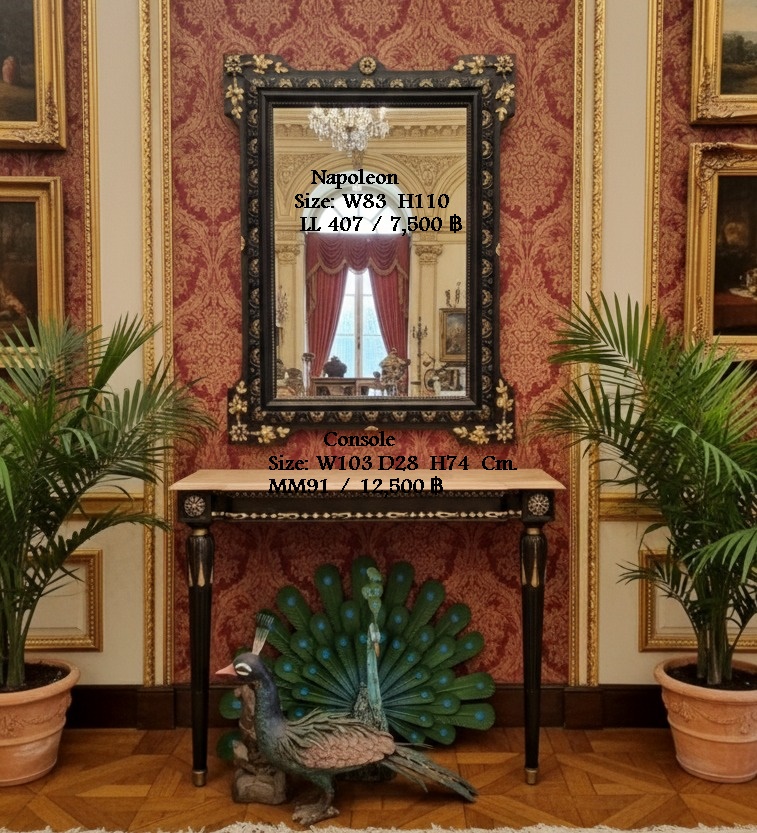 กระจกพร้อมคอนโซลกรอบไม้ทอปหินอ่อนนโปเลียน