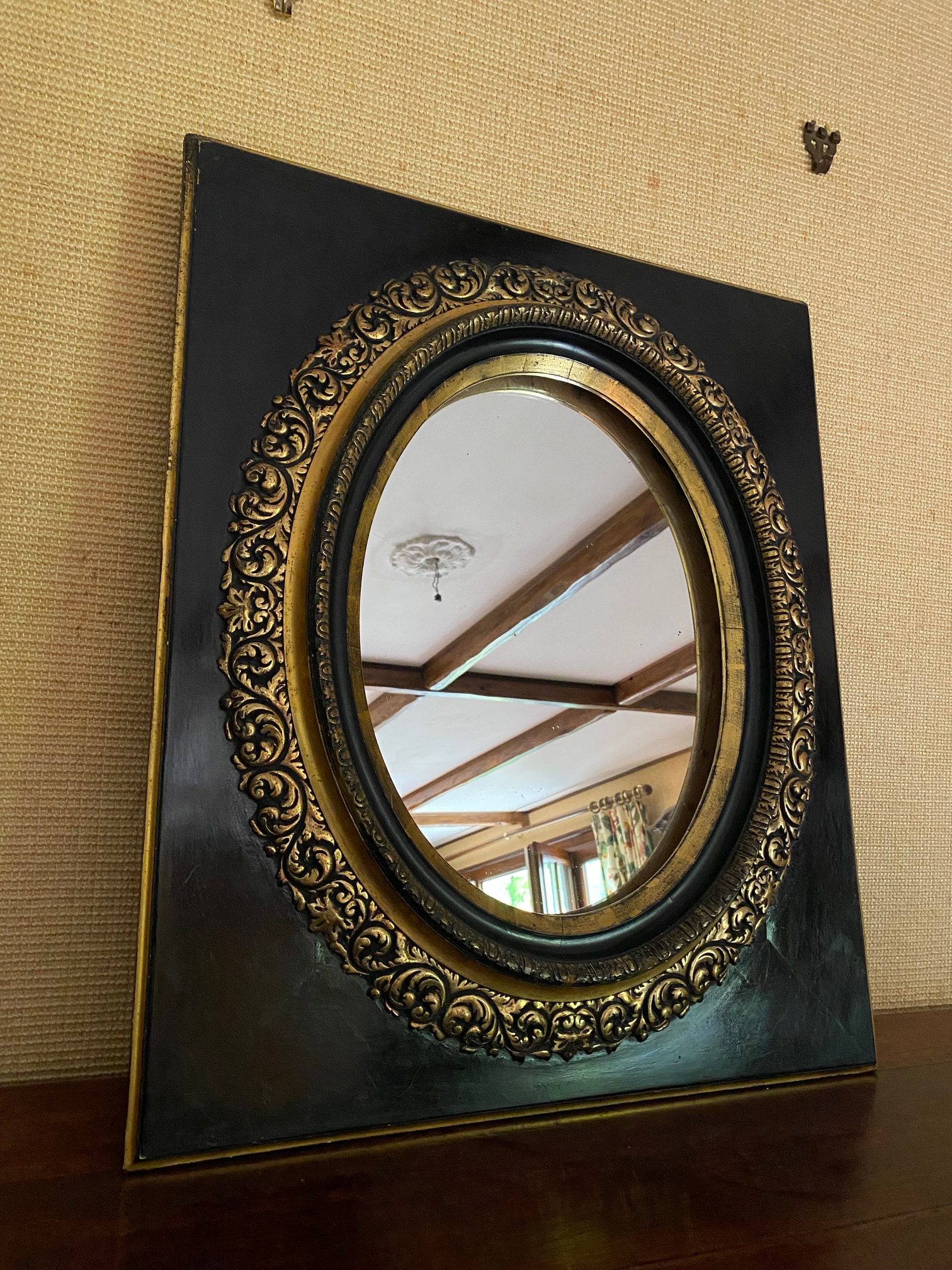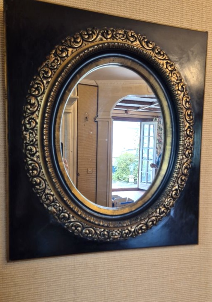 กระจกเงากรอบไม้ทรงรีมือสองฝรั่งเศส