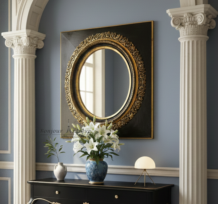 กระจกเงากรอบทรงรีไม้-ปูนสไตล์นโปเลียน
