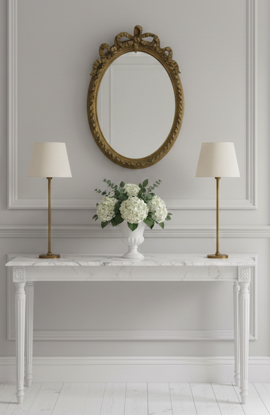 กระจกเงาฝรั่งเศสสไตล์หลุยส์16ไม้-ปูนสีทอง