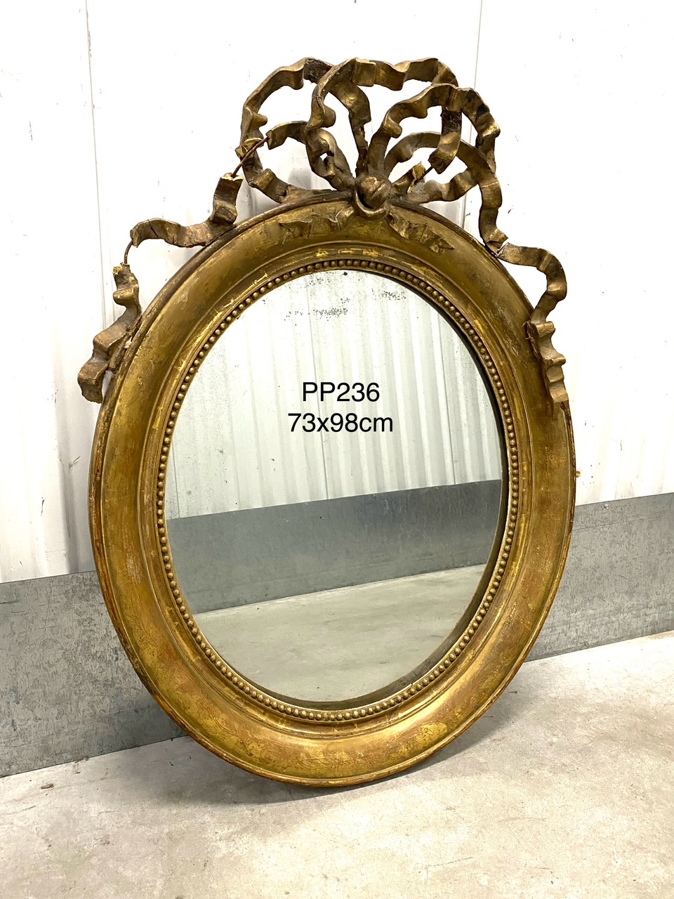 กระจกเงาหลุยส์16ทรงรีไม้-ปูนมีพวงมาลัยที่ยอด
