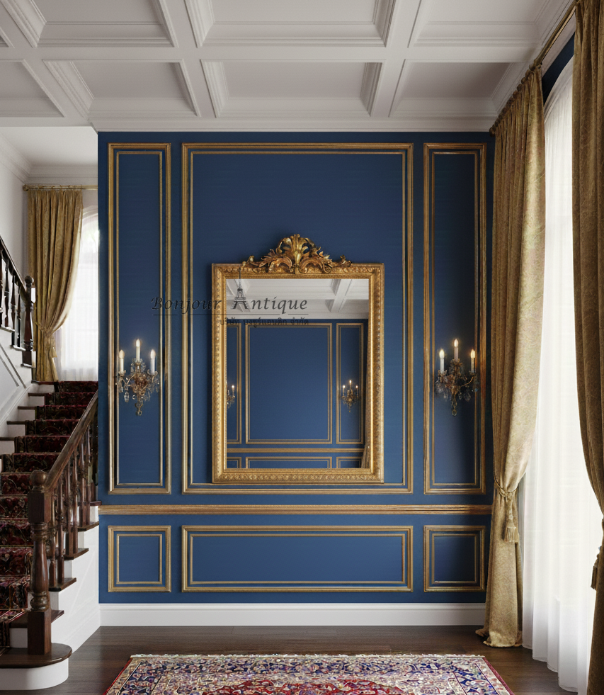 กระจกเงาไม้-ปูนฝรั่งเศสสไตล์หลุยส์15ขนาดใหญ่สีทอง