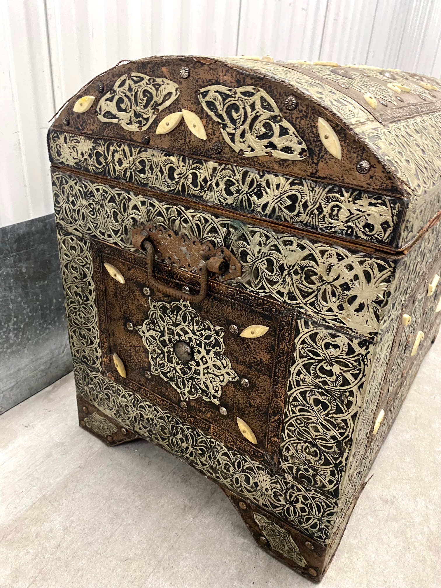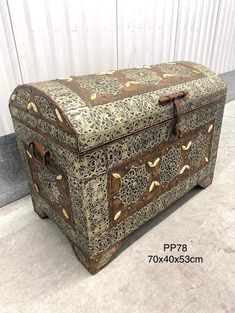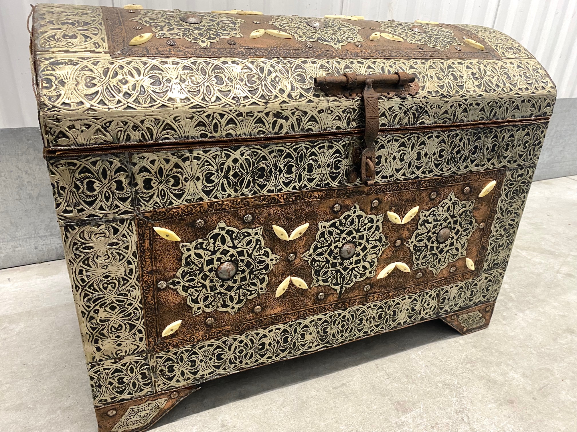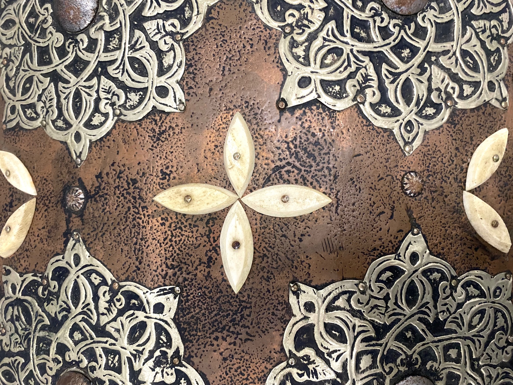 กล่องหีบไม้โมร็อคโคแต่งแผ่นเงิน-ทองแดง-กระดูกอูฐ