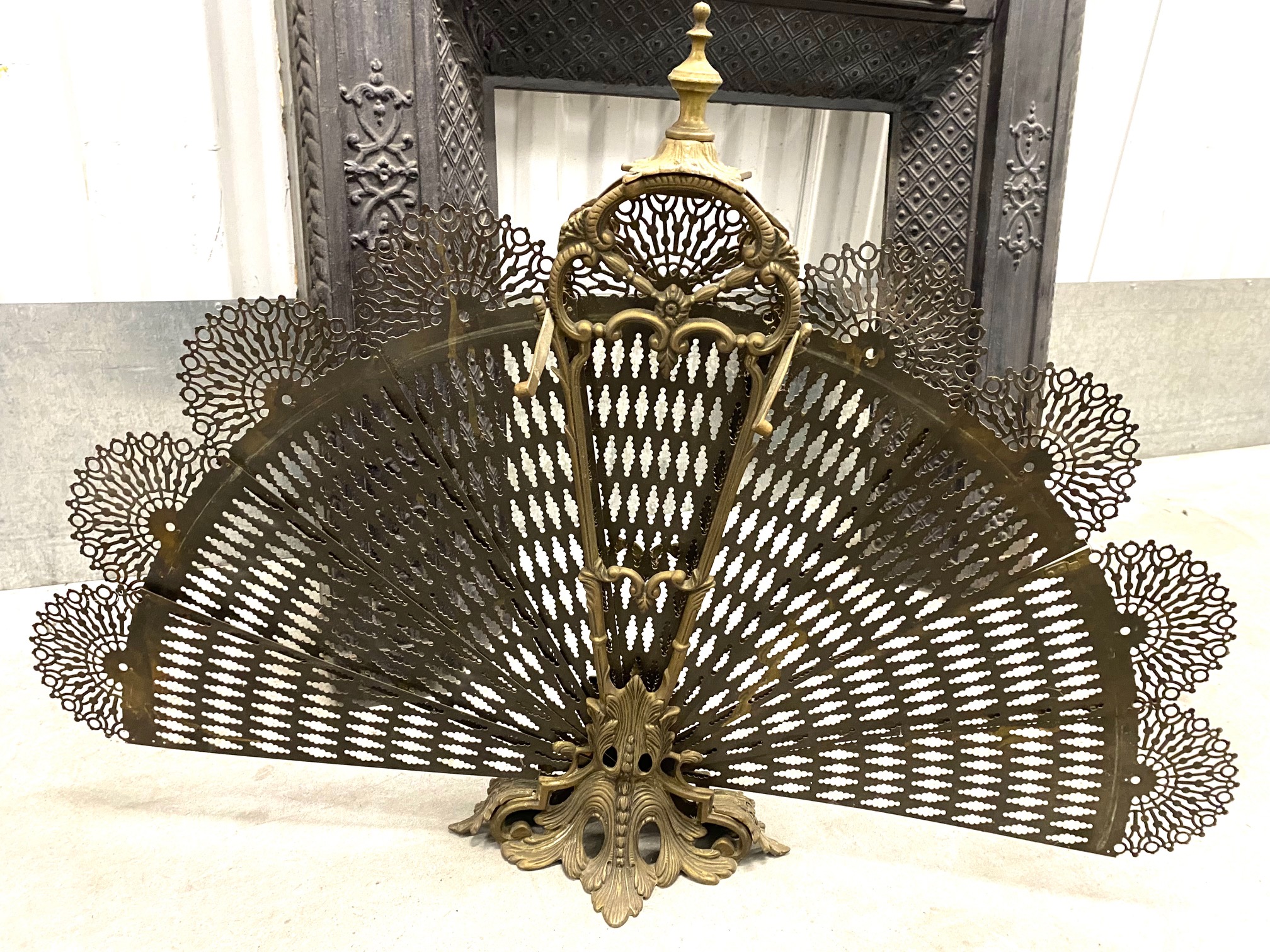 ฉากลดความร้อนหน้าเตาผิงทองเหลืองพับได้