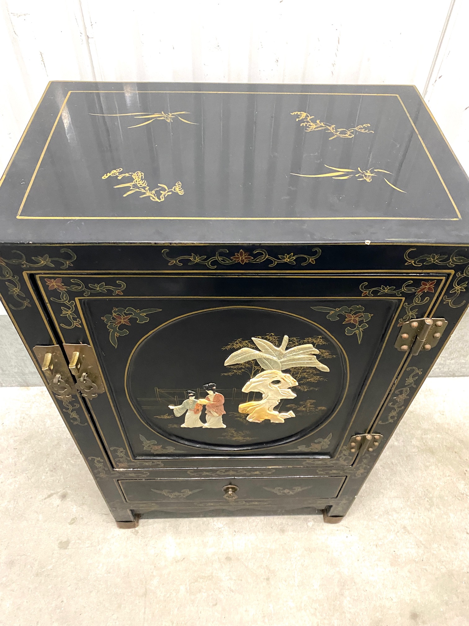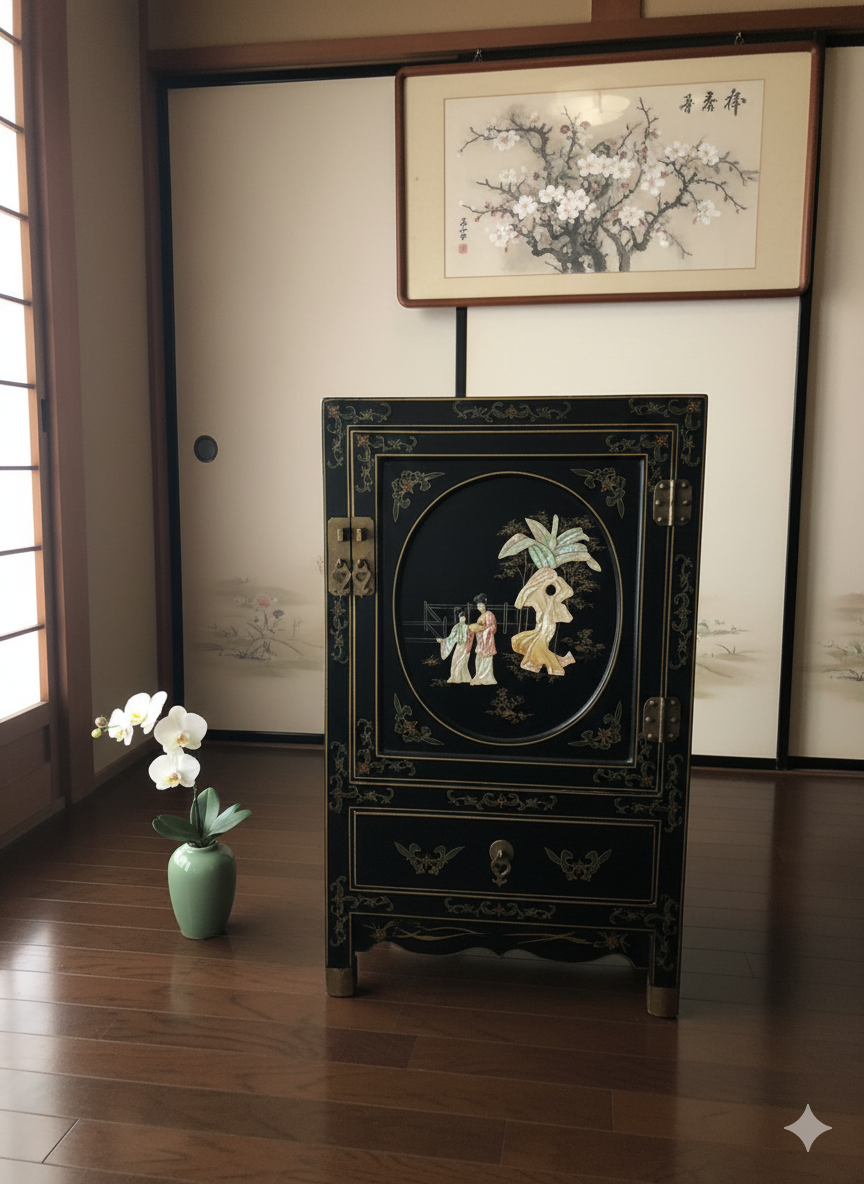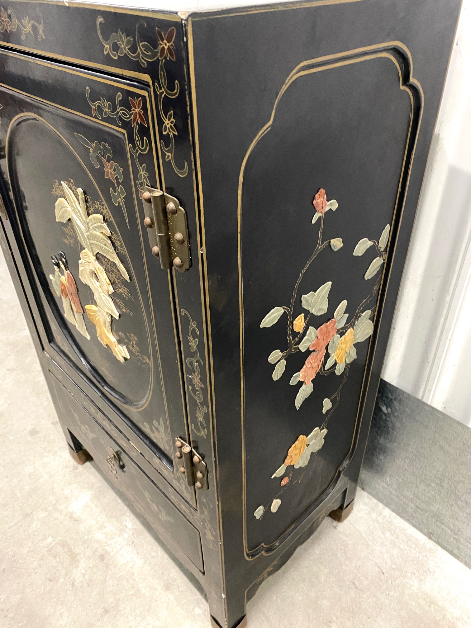 ตู้จีนเล็กเพ้นท์มือประดับหินแกะสลัก
