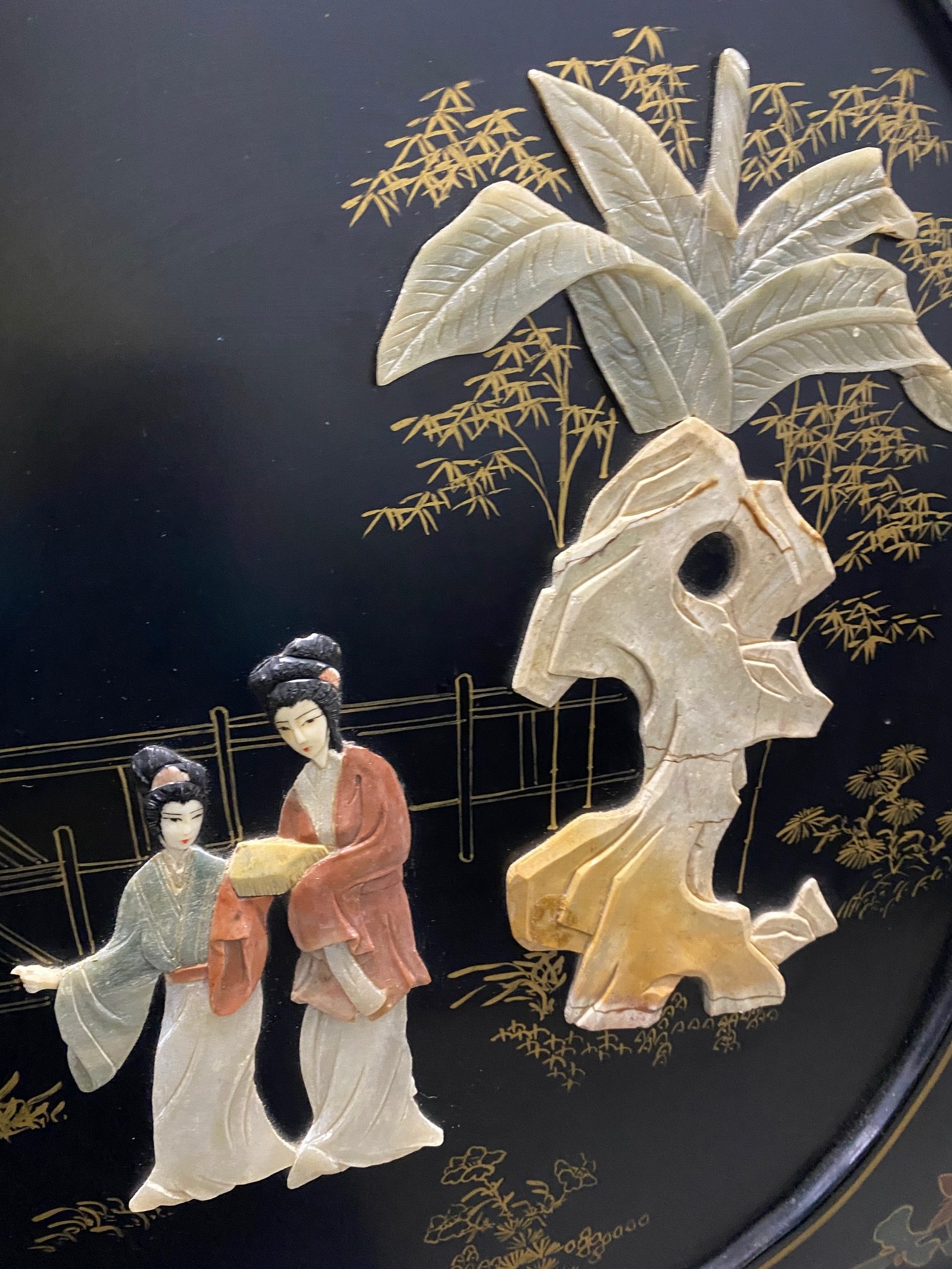 ตู้จีนเพ้นท์ประดับหินแกะสลัก