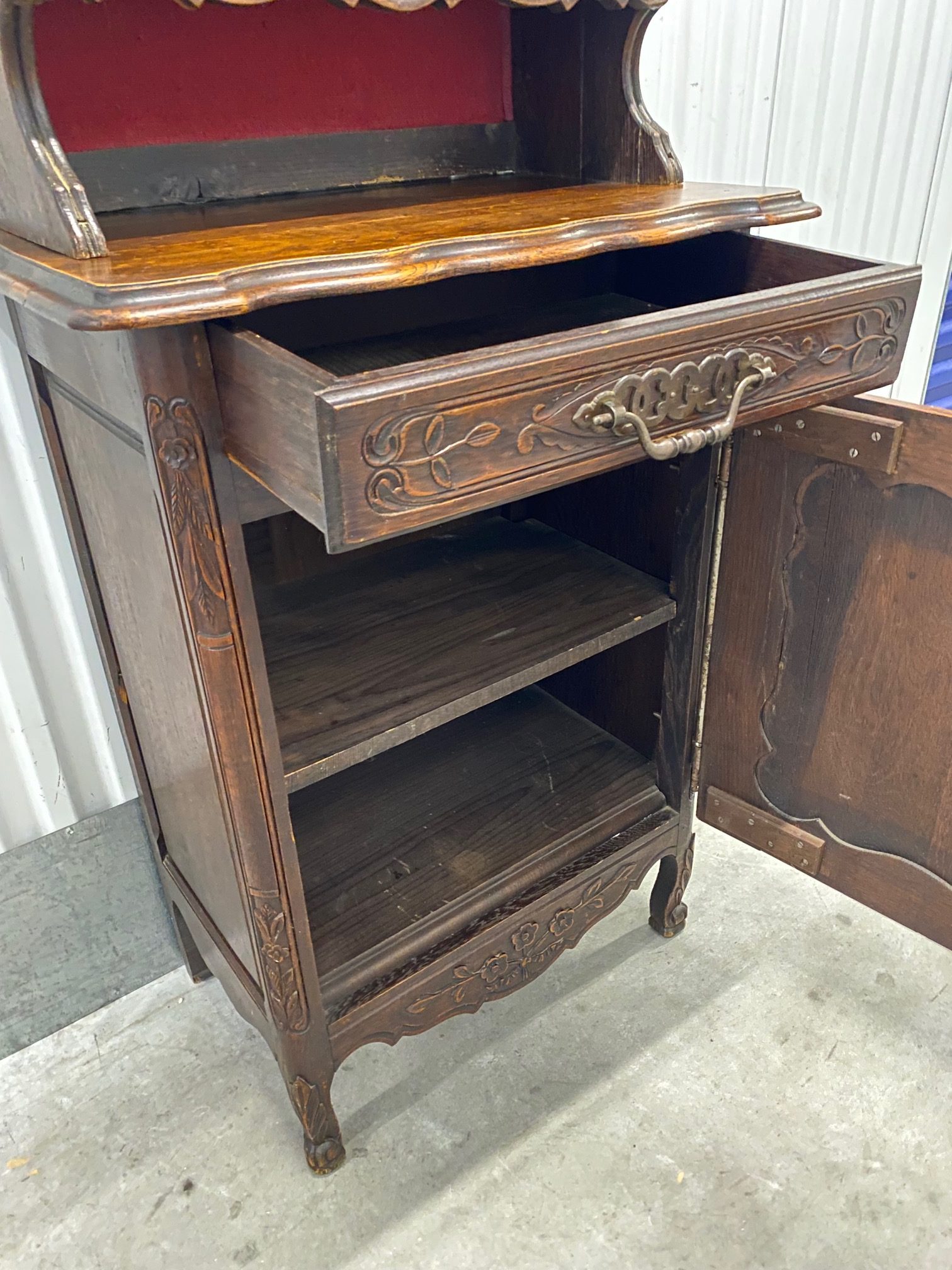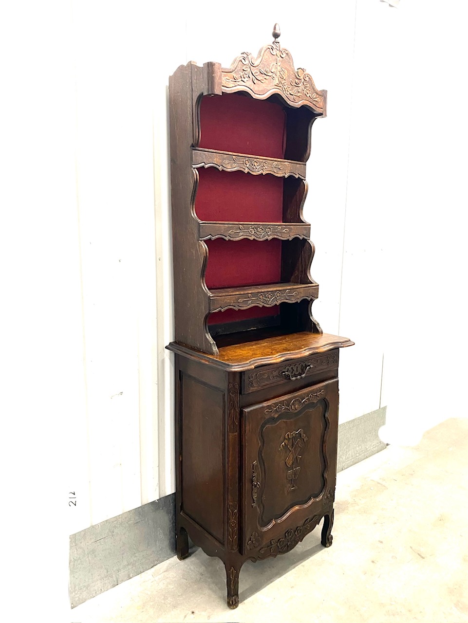 ตู้บุฟเฟต์2ชั้นไม้โอ๊คแกะสลักทรงสูงด้านบนโชว์จาน