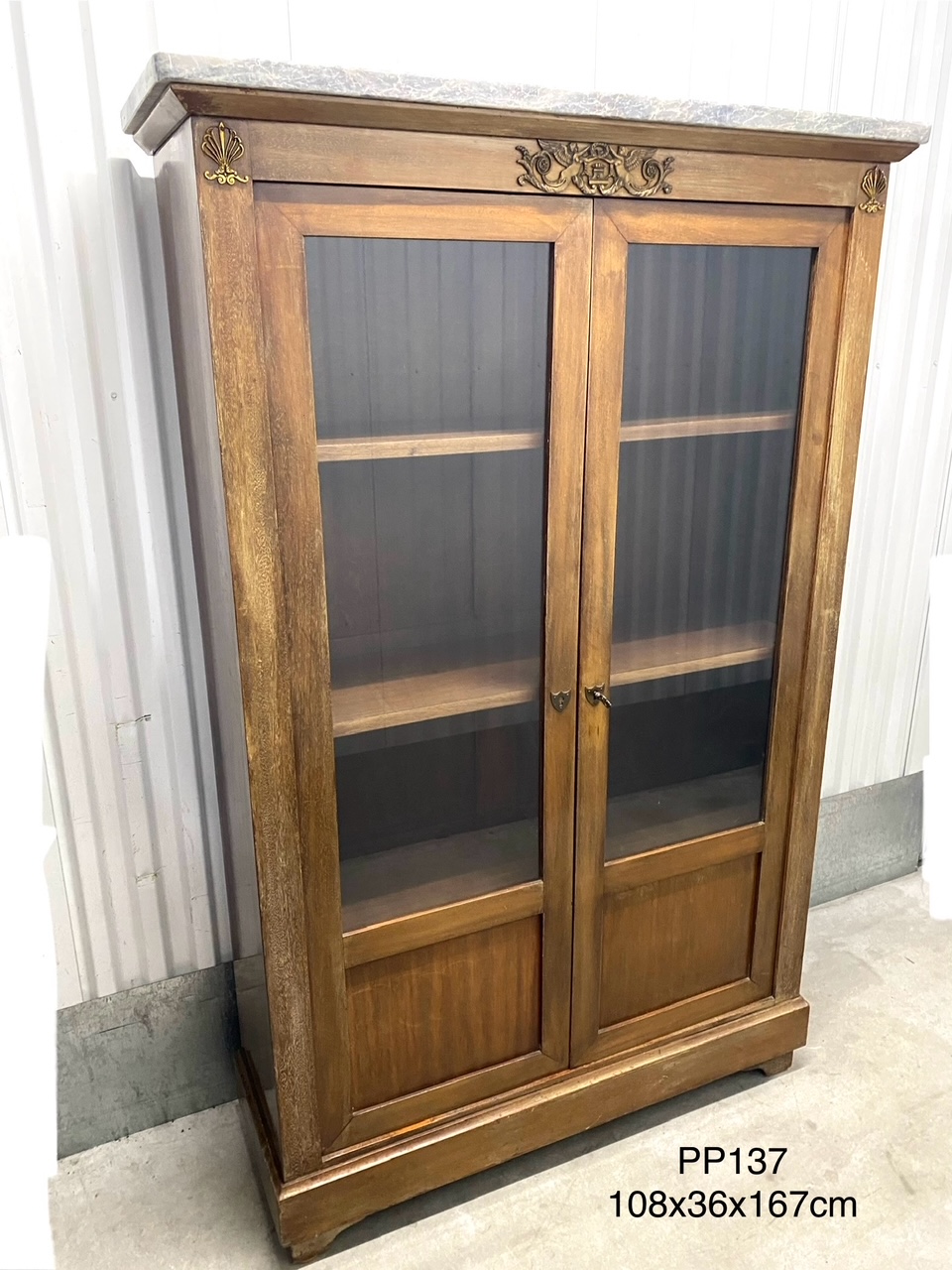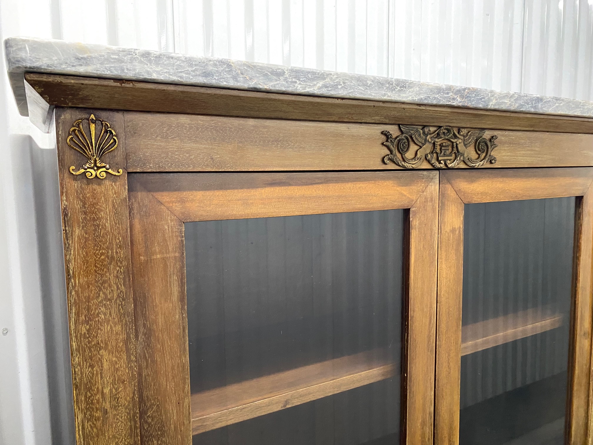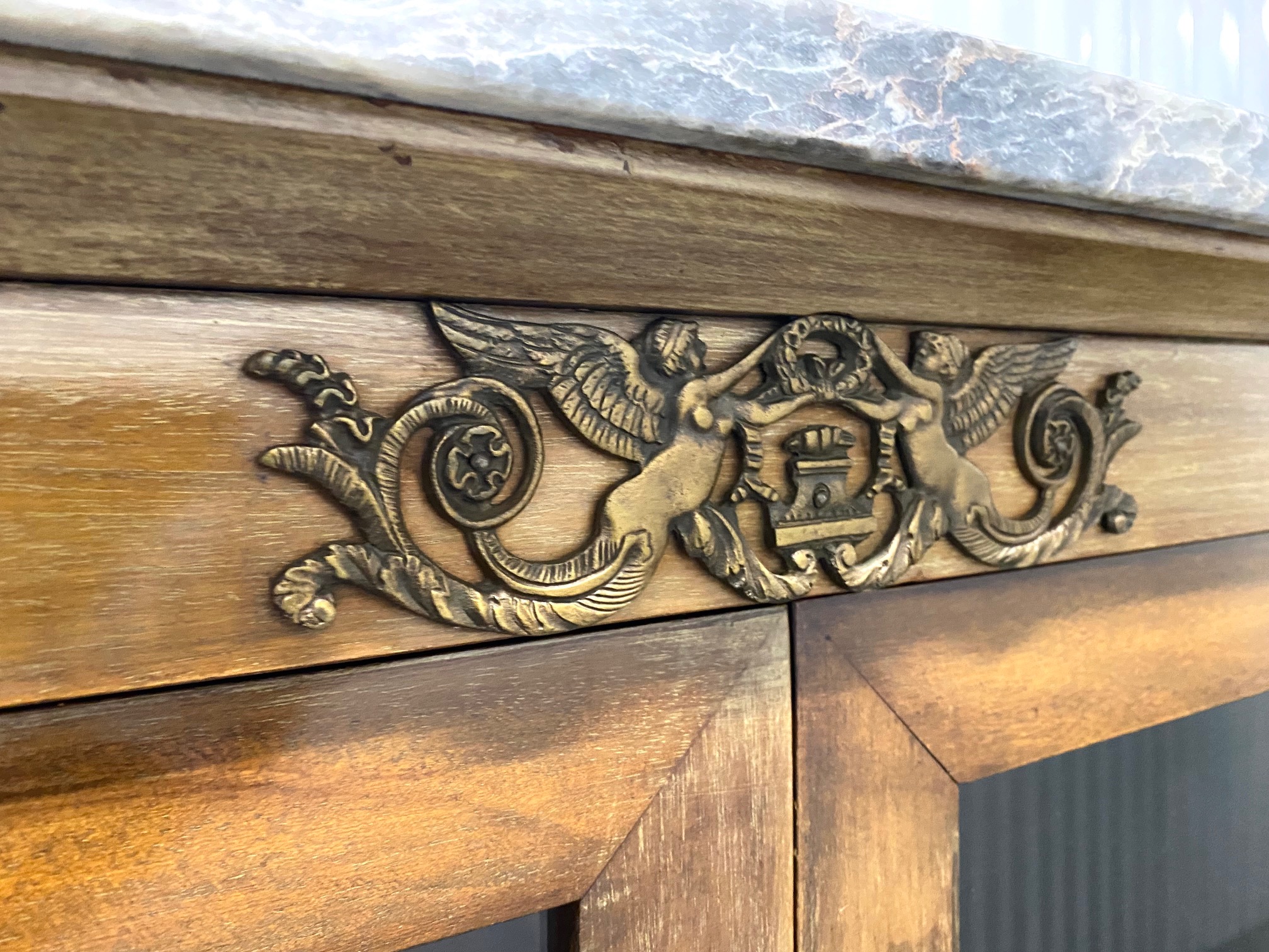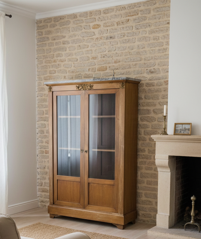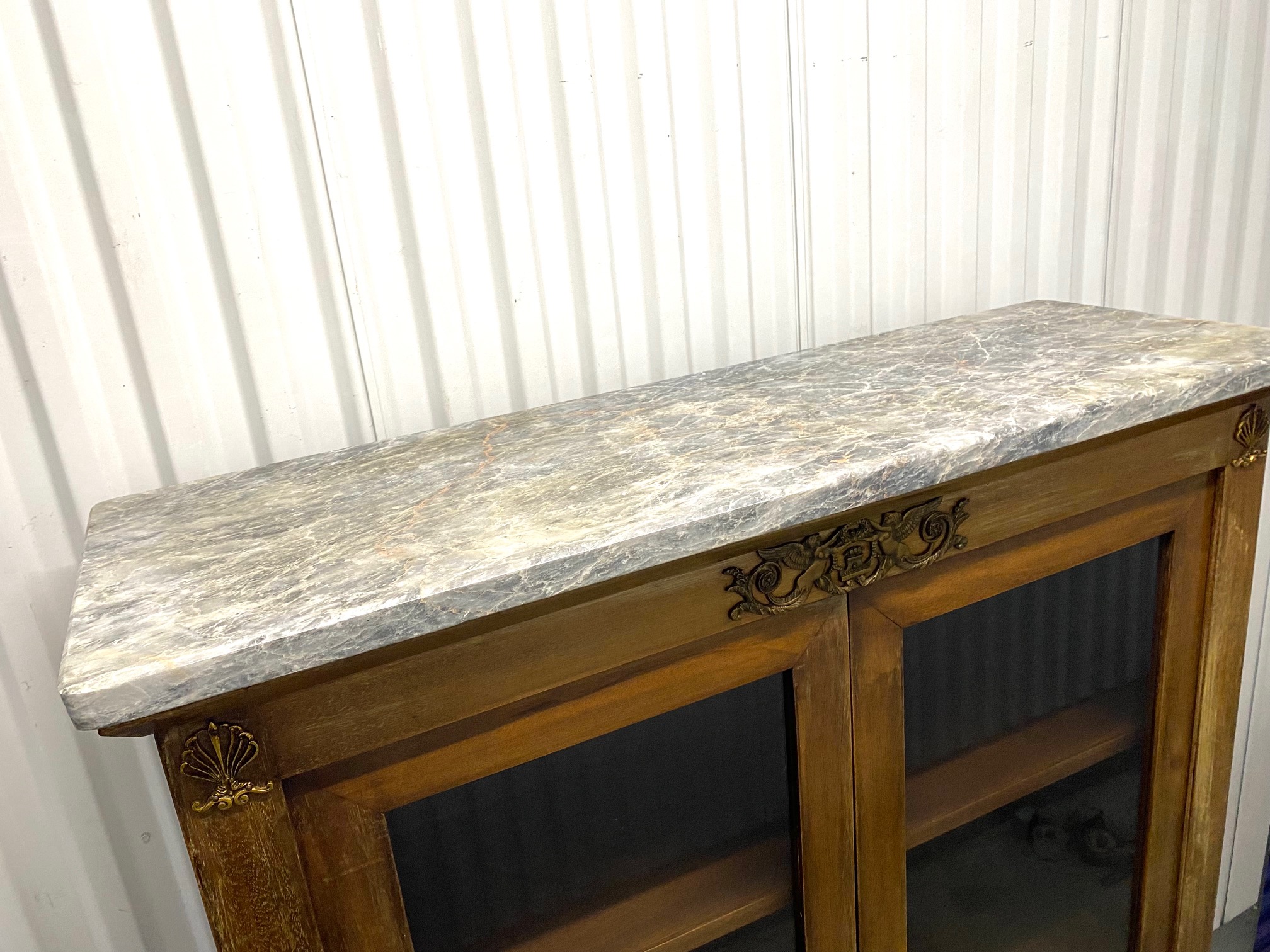 ตู้โชว์กระจกแต่งทองเหลืองสไตล์เอมไพรท็อปหินอ่อน