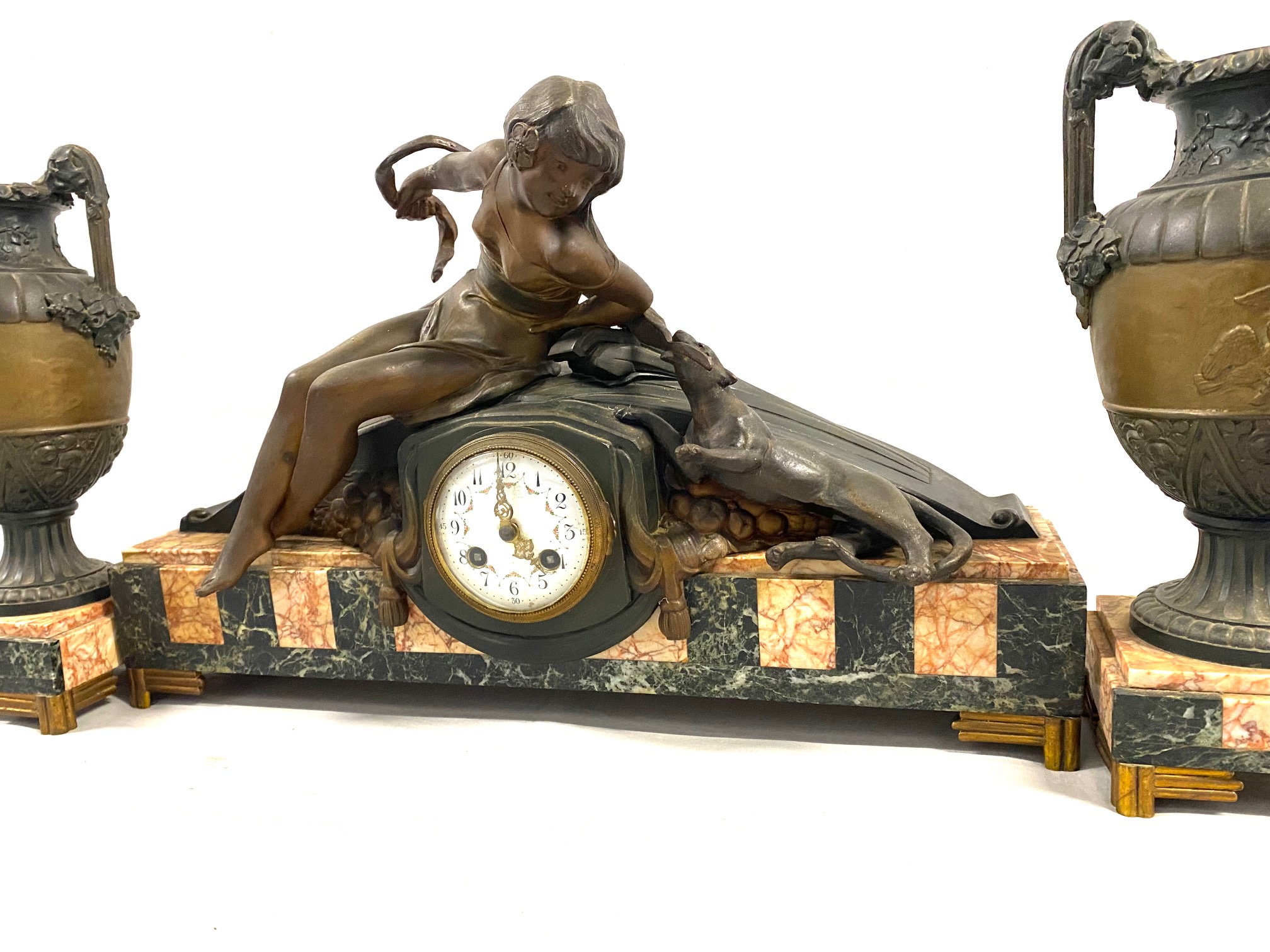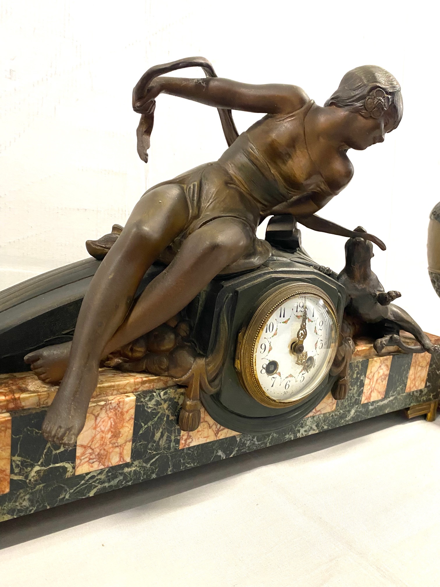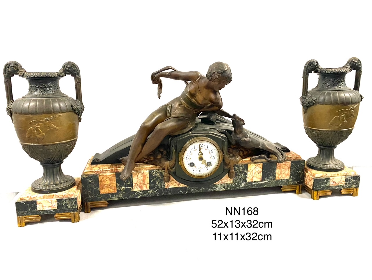 นาฬิกาตั้งโต๊ะพิวเตอร์แจกันคู่อ๊าตเดโก้