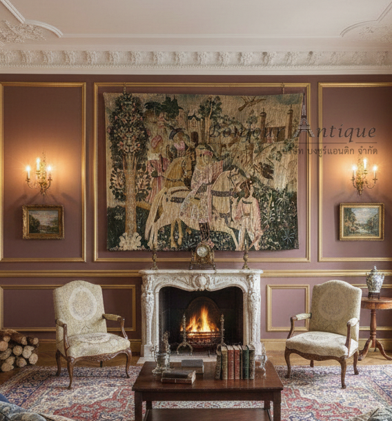 ผ้าทอโบราณติดผนังมือสองฝรั่งเศส