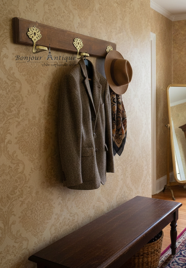 ราวไม้โอ๊คแขวนของตะขอทองเหลือง