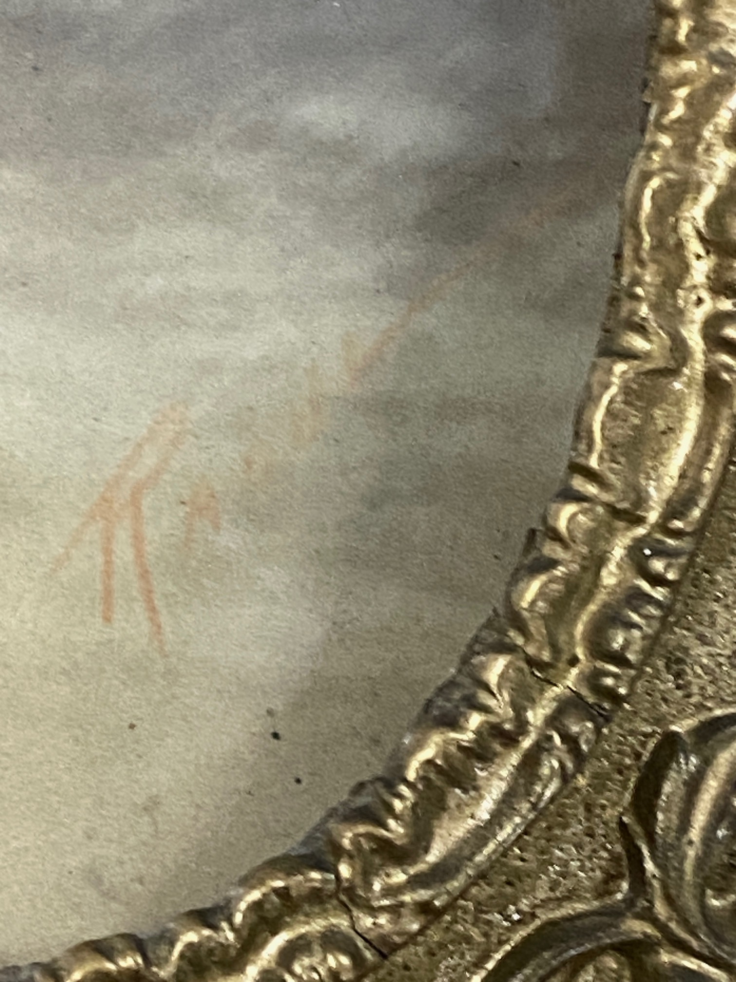 รูปสีชอล์กโบราณมีลายเซ็นต์กรอบไม้