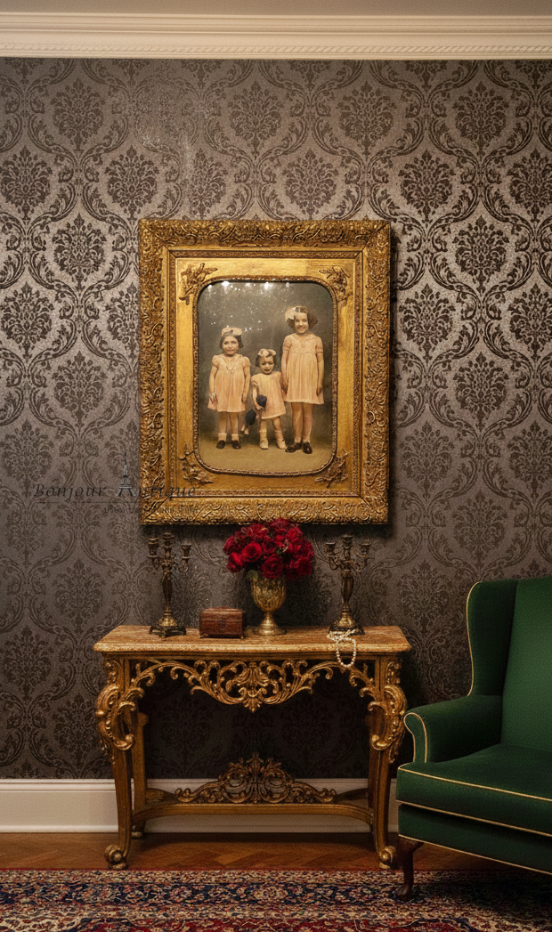 กรอบไม้รูปโบราณสีชอล์กมีลายเซ็นต์