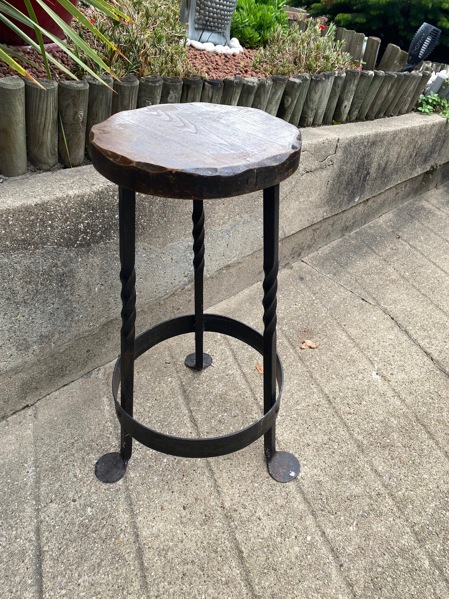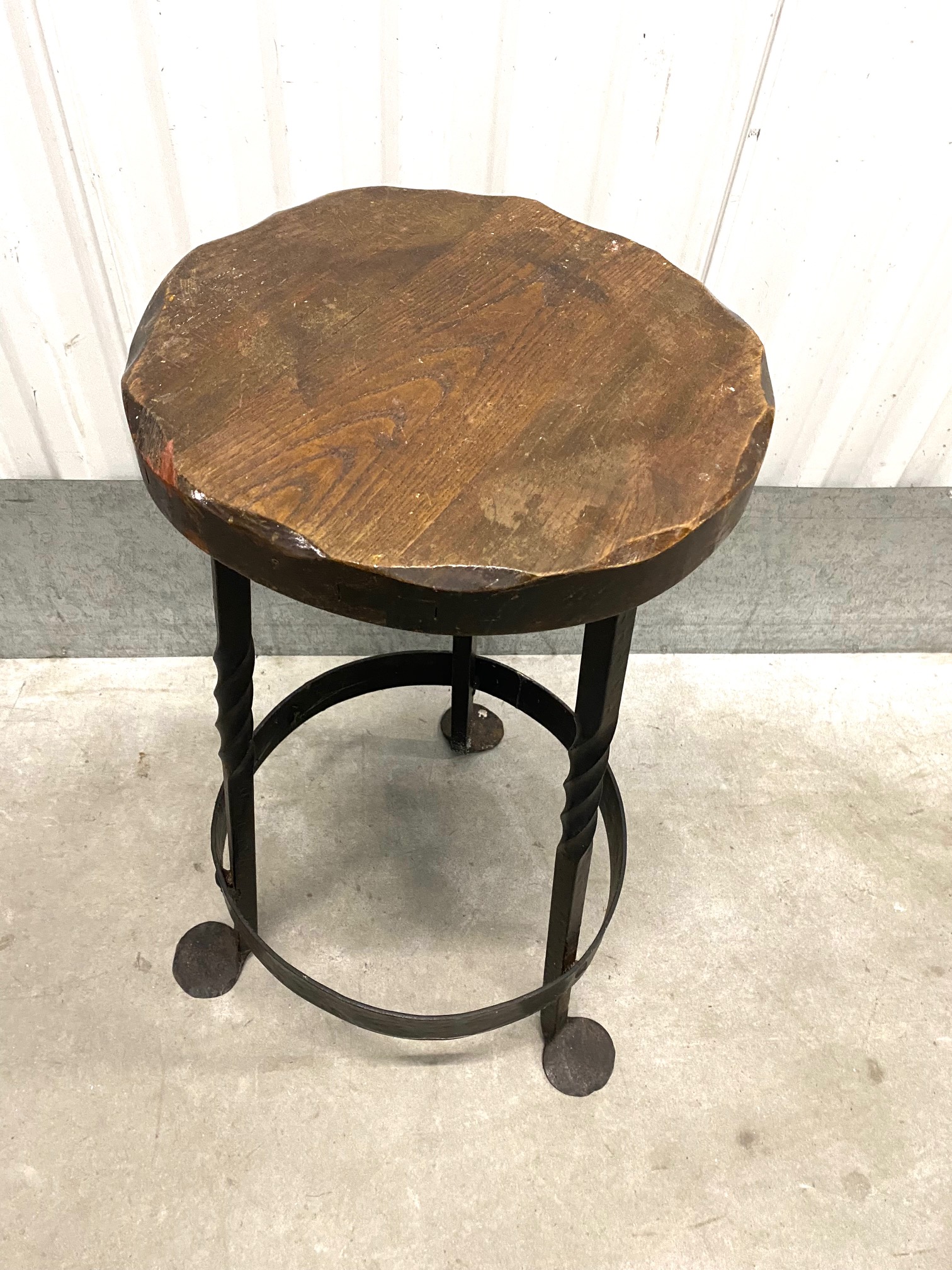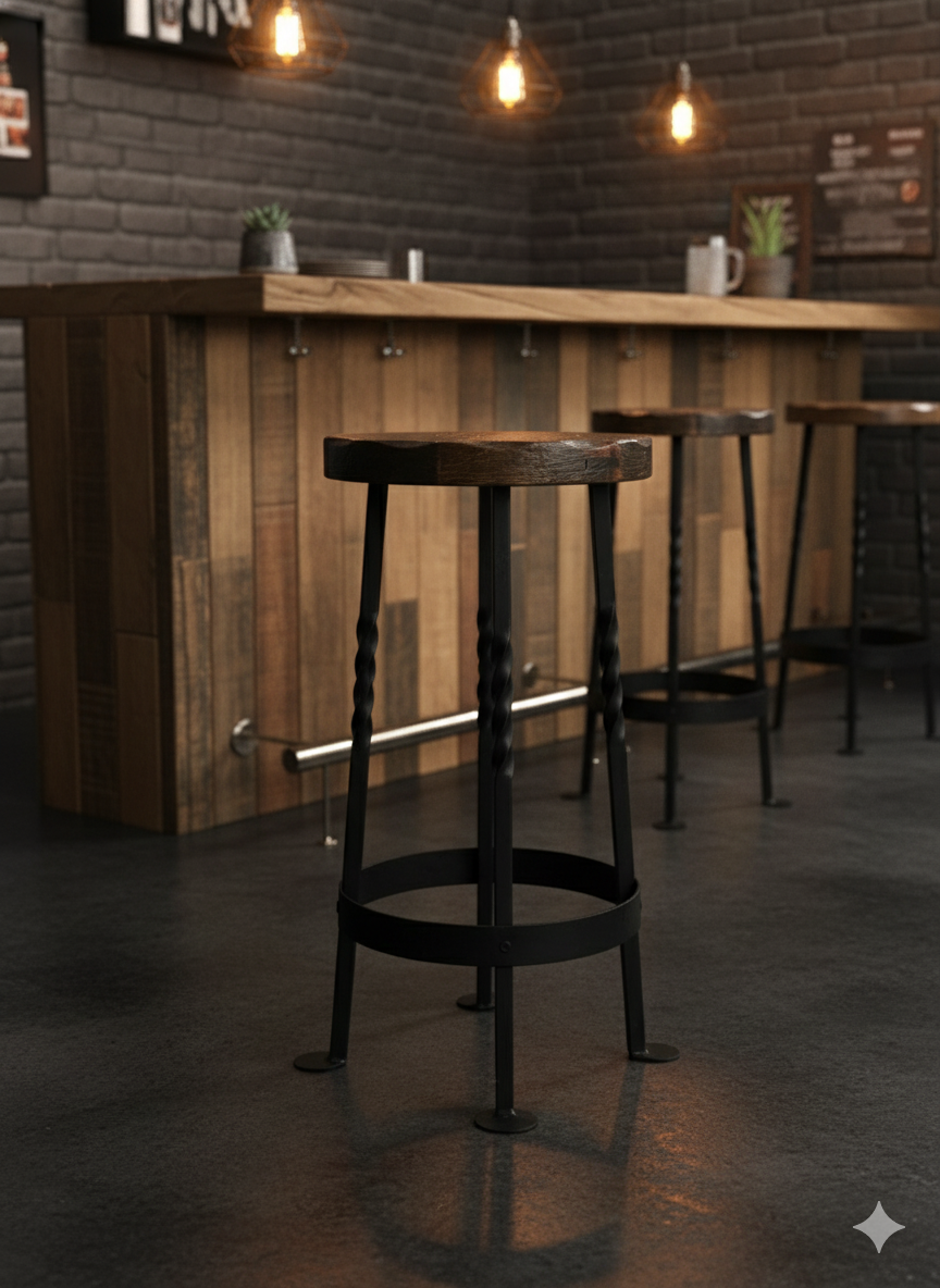 เก้าอี้บาร์ขาเหล็กดัดเดี่ยวท็อปไม้