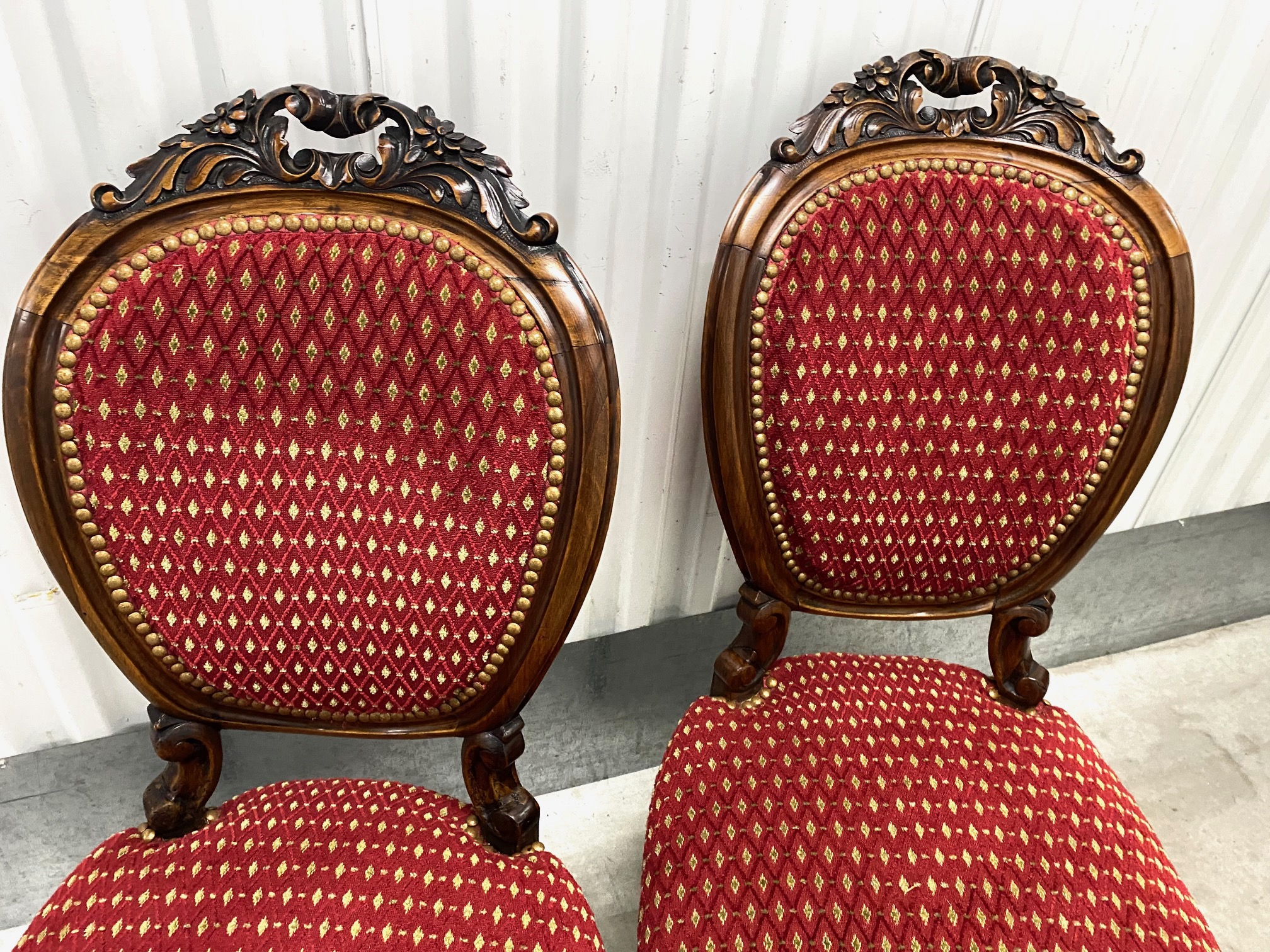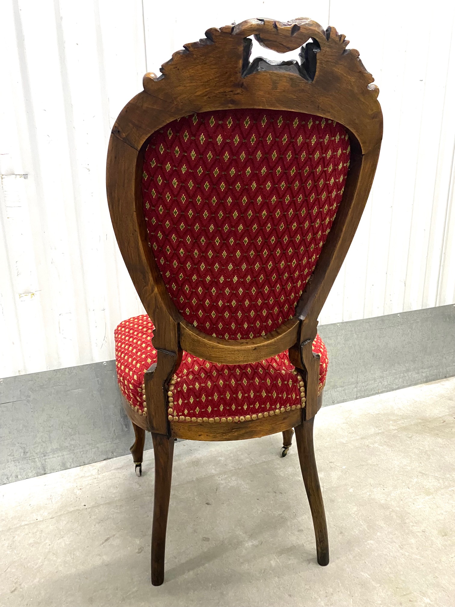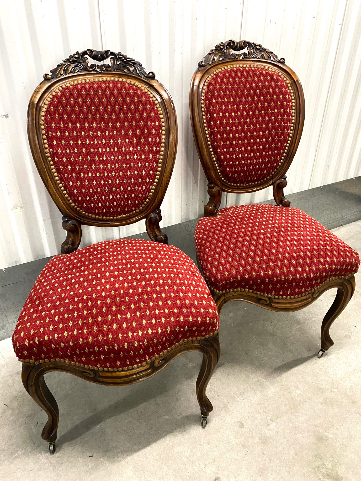 เก้าอี้ผ้าลูกฟูกคู่สีแดงมีล้อสไตล์หลุยส์-ฟิลิปป์