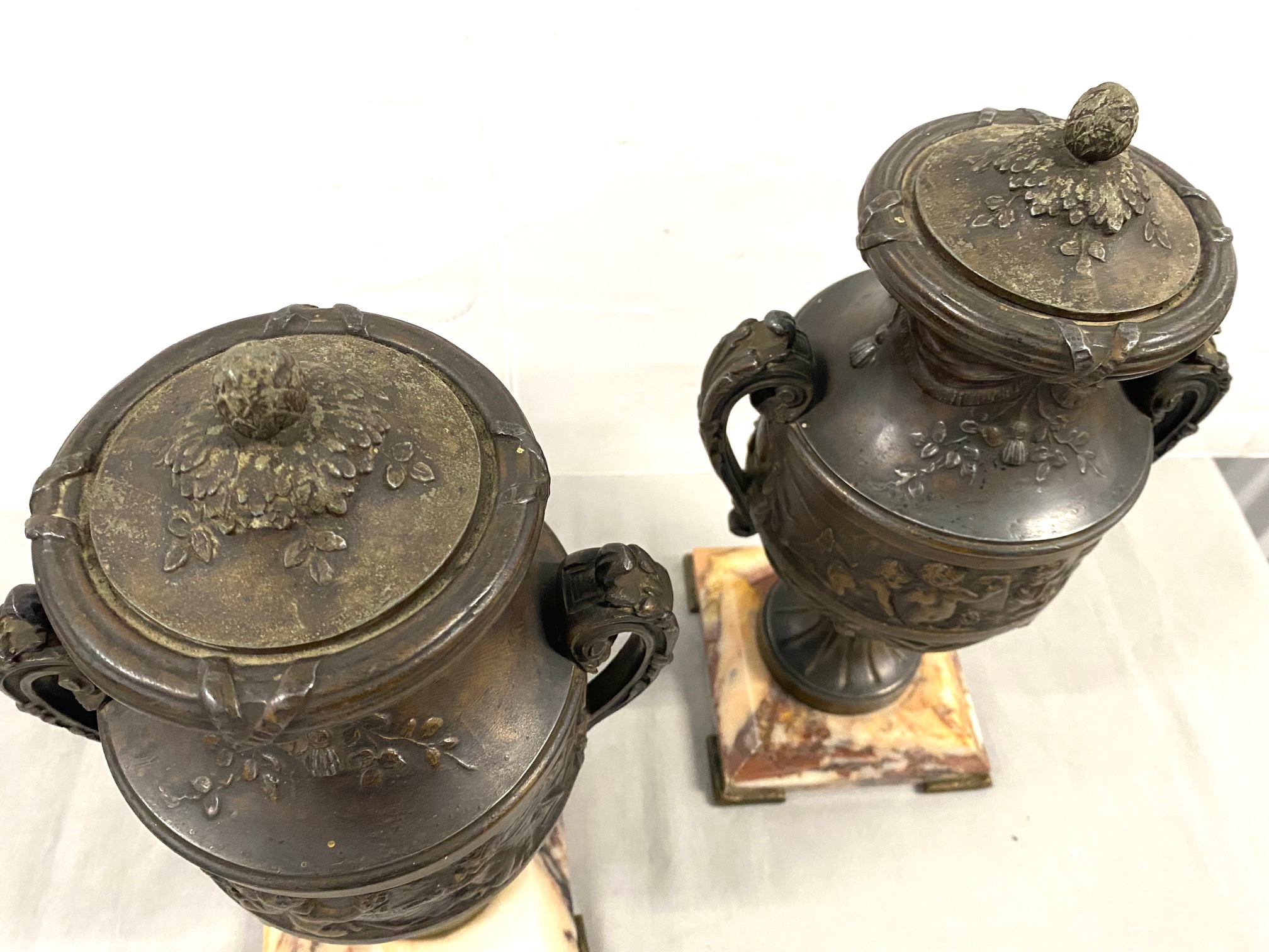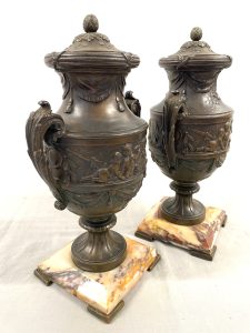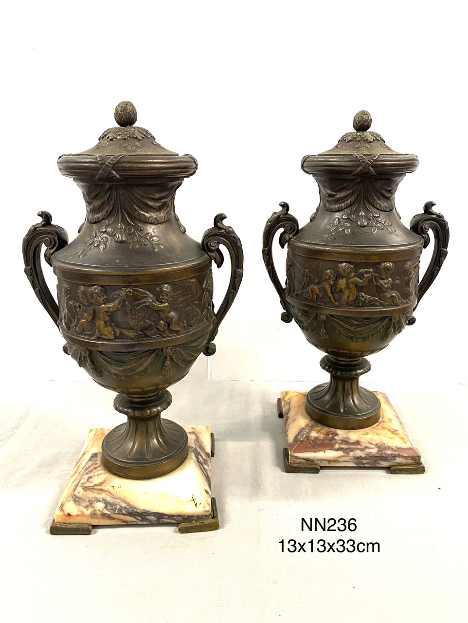 แจกันคู่พิวเตอร์ฐานหินอ่อนฝรั่งเศส