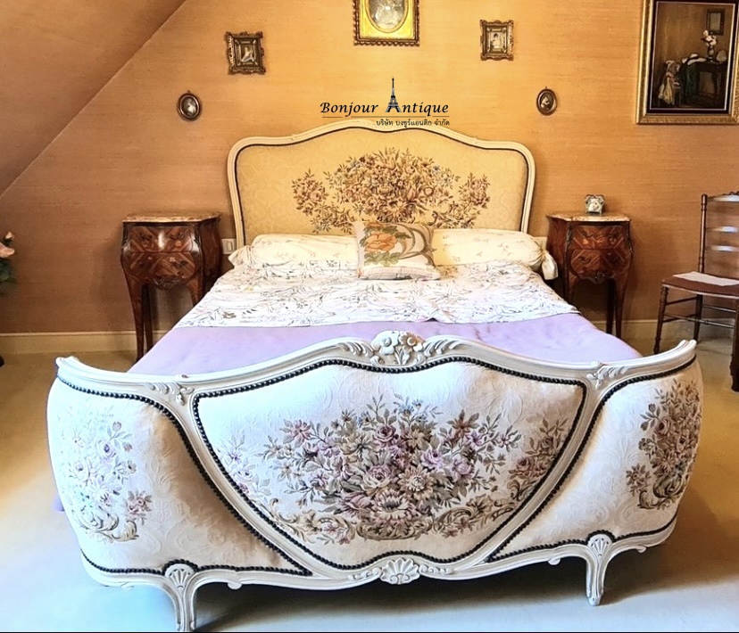 กรอบเตียงหลุยส์ 15+หมอน-ผ้าคลุมเตียง