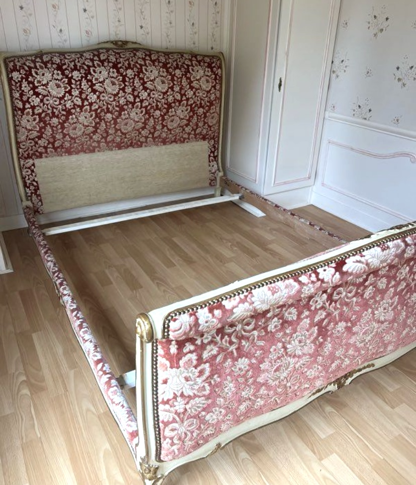กรอบเตียงหลุยส์ 15+หมอน-ผ้าคลุมเตียง