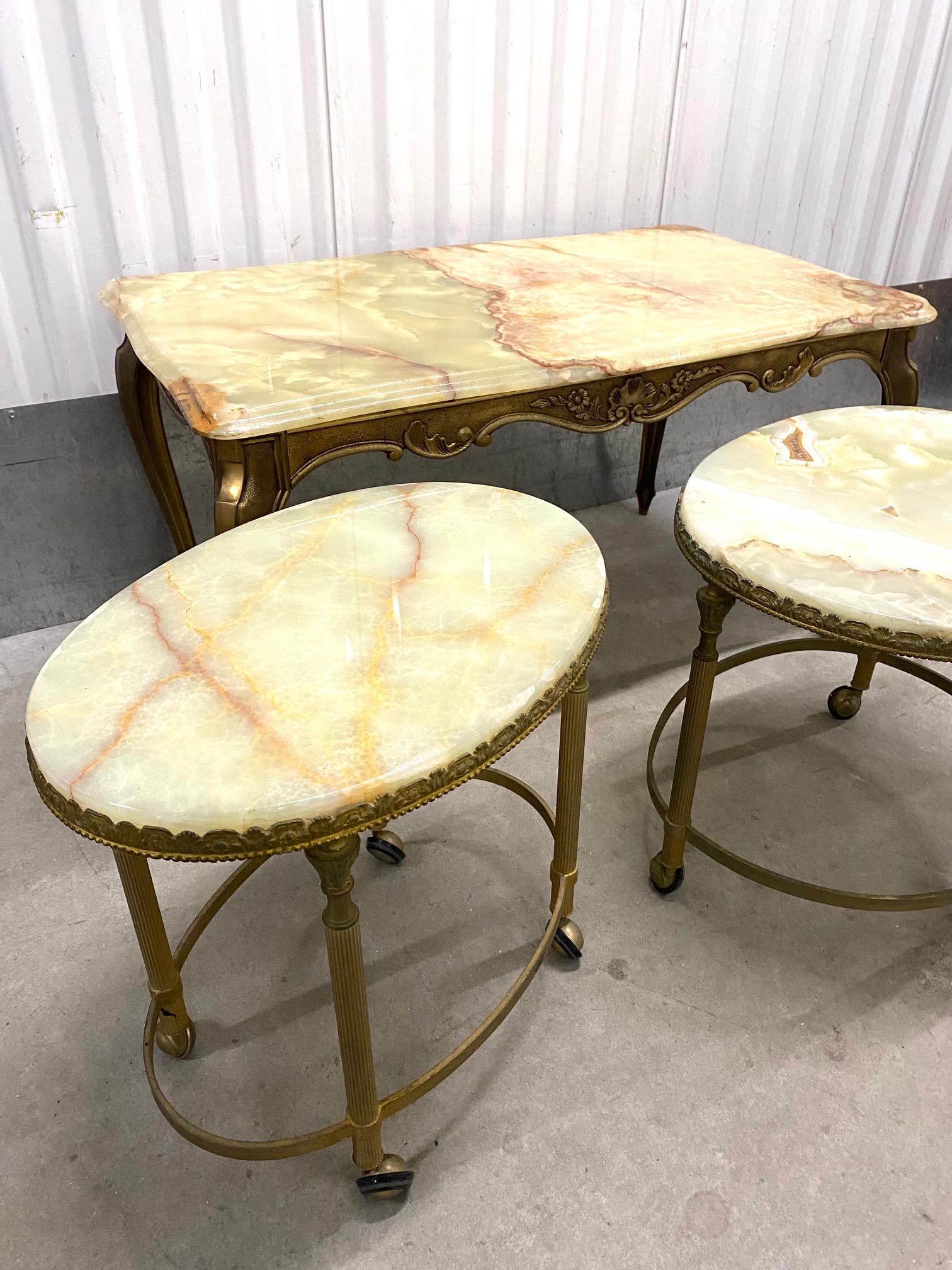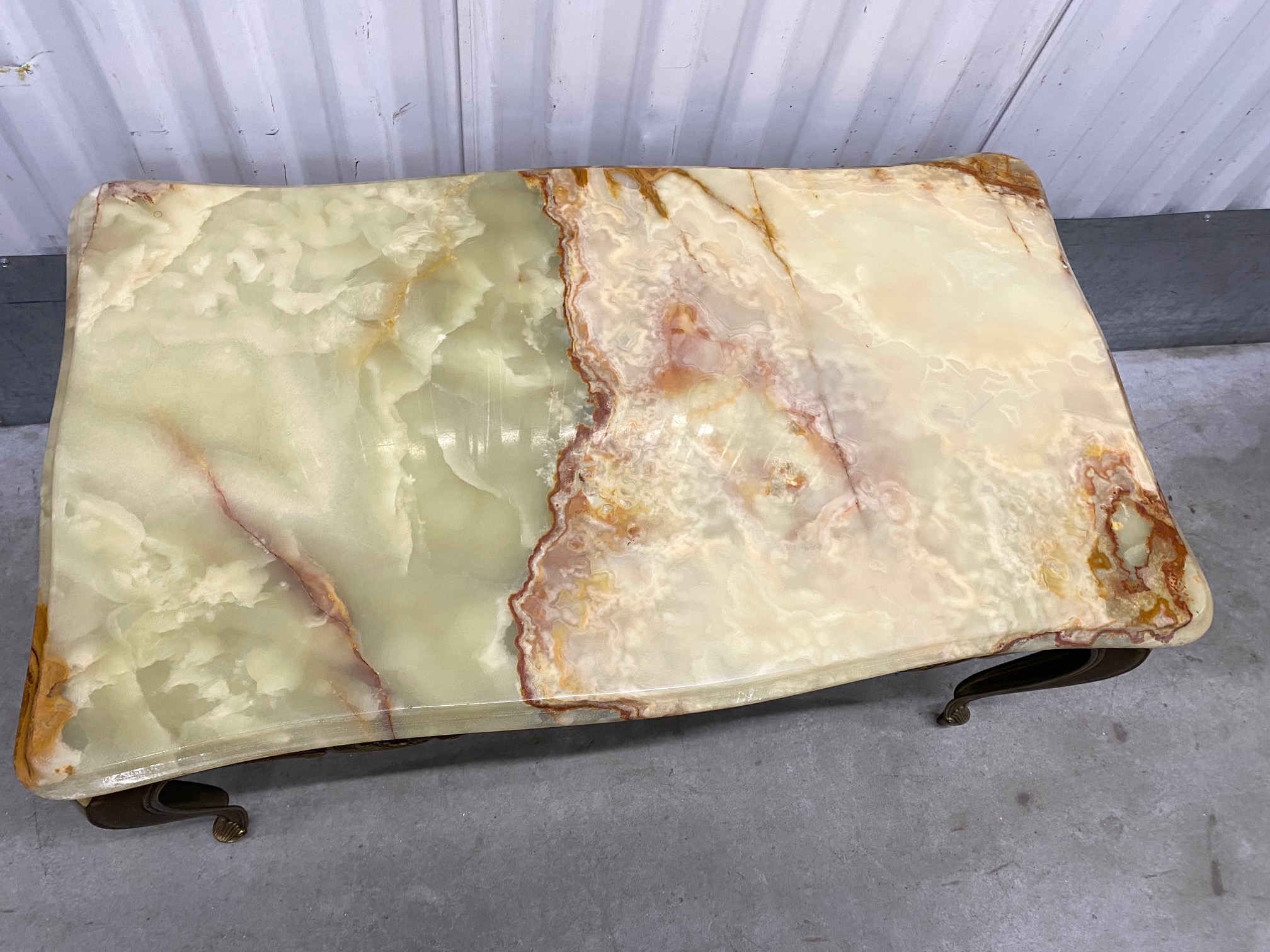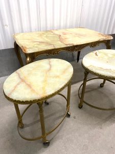โต๊ะกลางขาทองเหลืองท็อปหินอ่อนสีเขียว