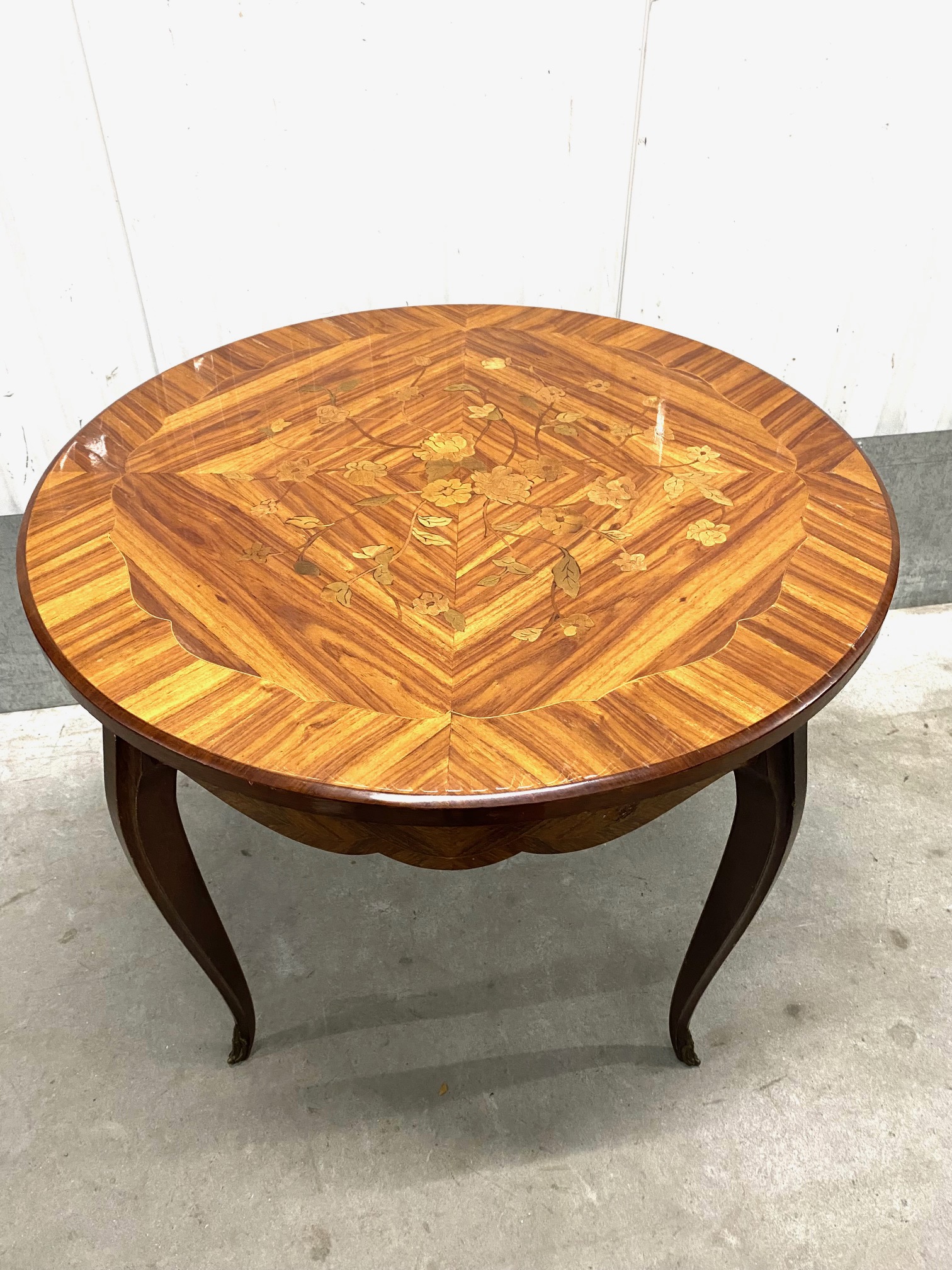 โต๊ะกลางทรงกลมอินเลด์มือสอง