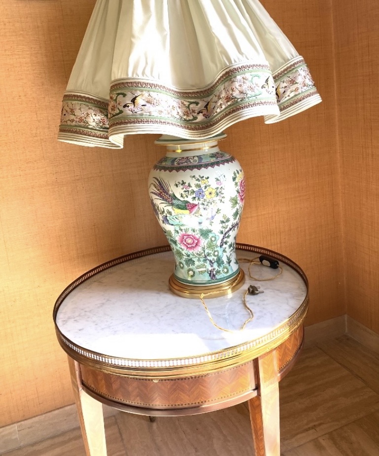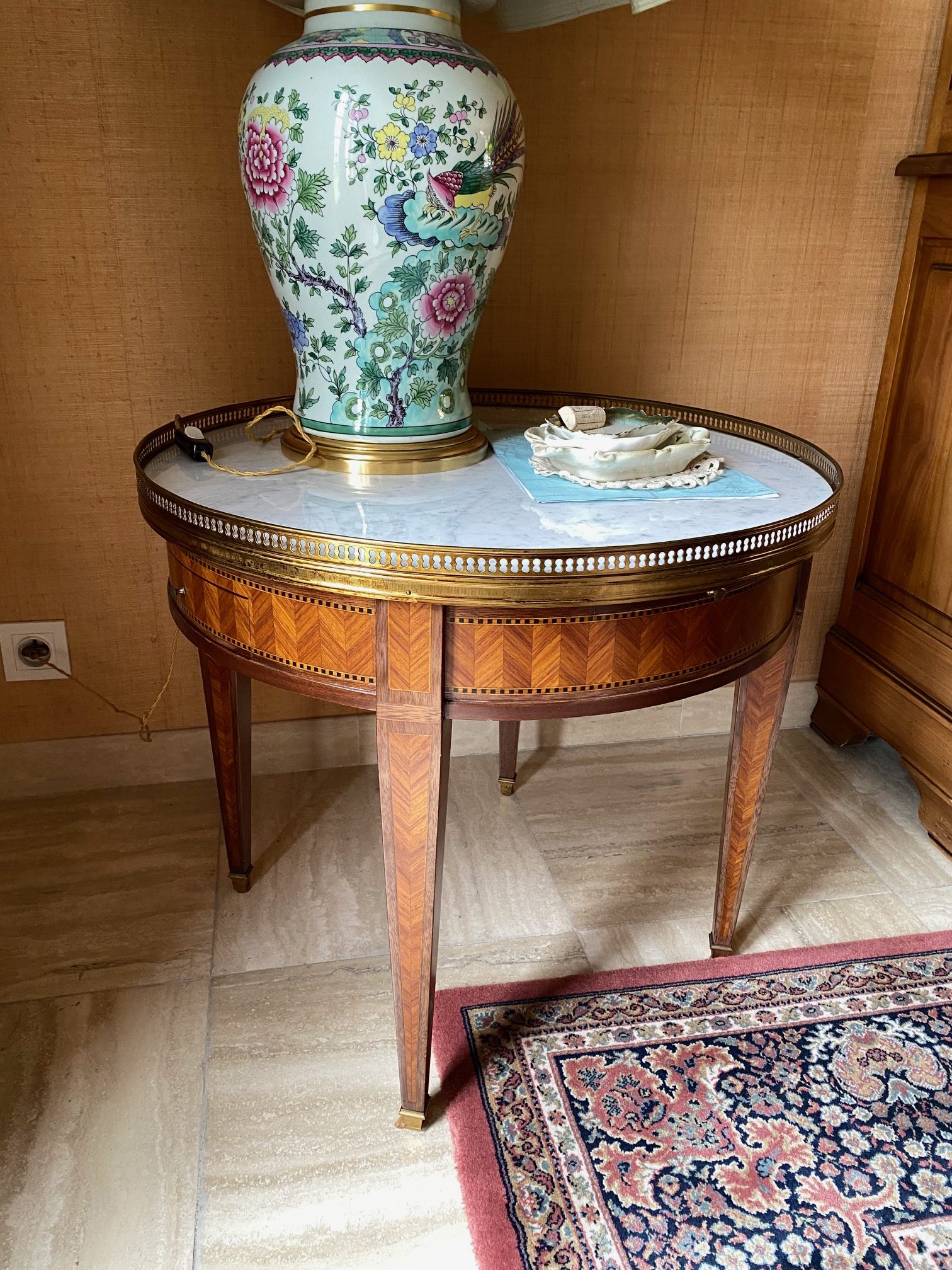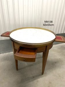 โต๊ะกลางหินอ่อนทรงกลมขอบทองเหลือง2 ลิ้นชัก2 เท็ปเล็ต