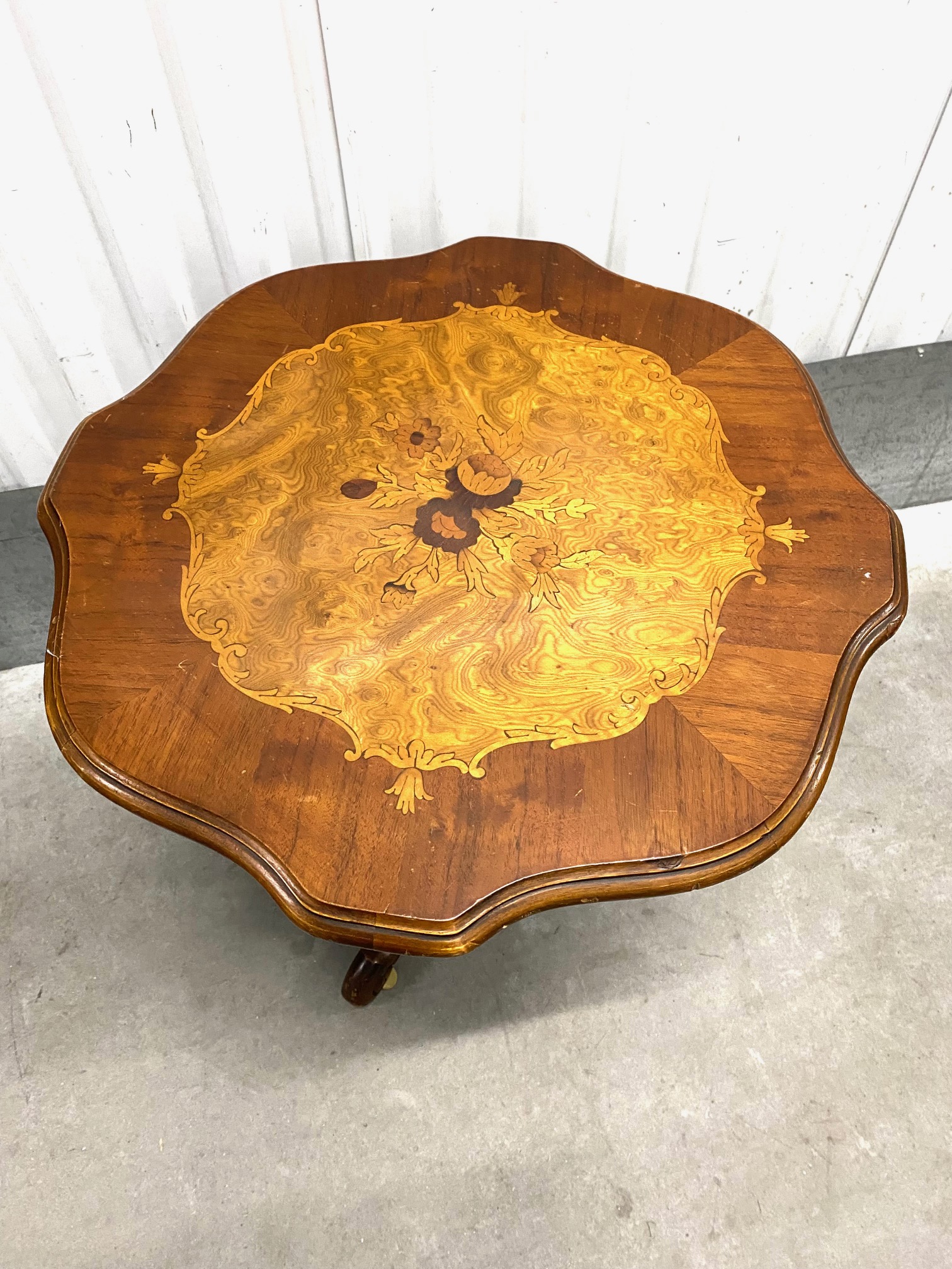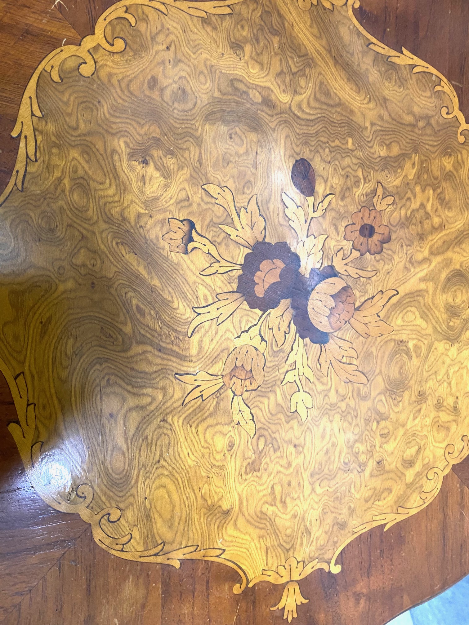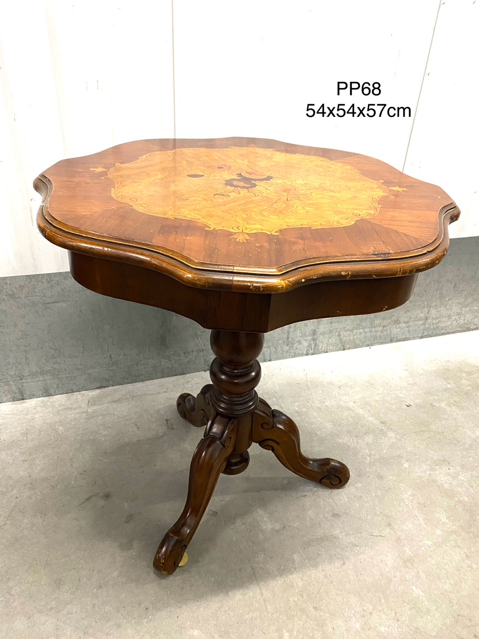 โต๊ะข้างไม้3ขาท็อปอินเลด์ทรงใบไม้