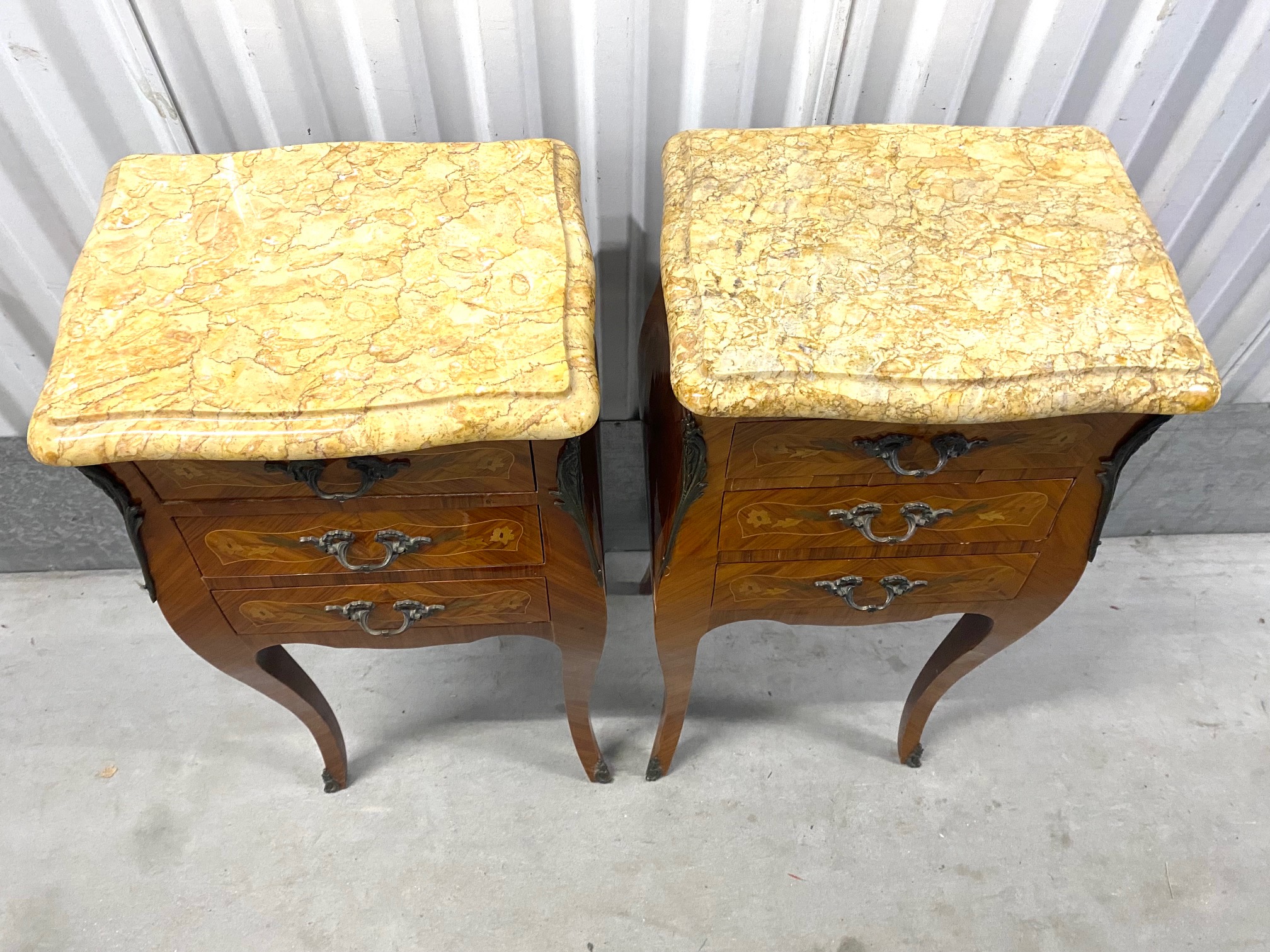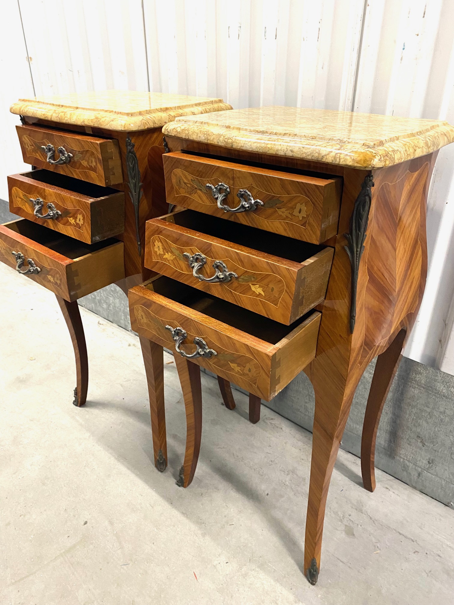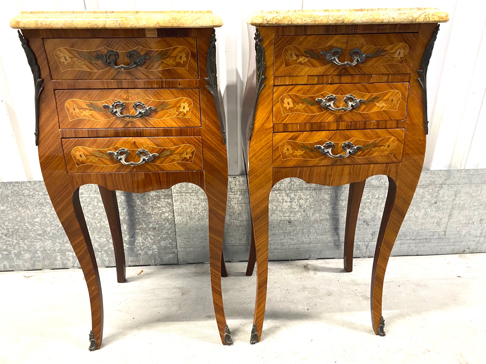 โต๊ะหัวเตียงอินเลด์ท็อปหินอ่อน 3 ลิ้นชักคู่ chevets