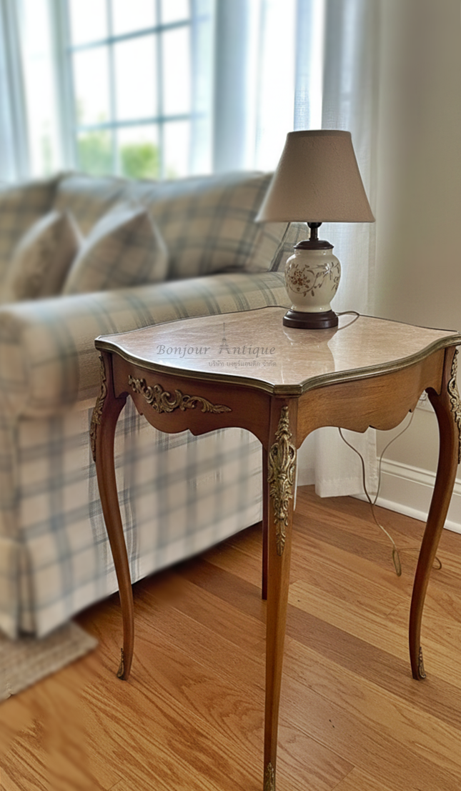 โต๊ะเล็กวางข้างอินเลด์ขอบทองเหลืองท็อปหิน