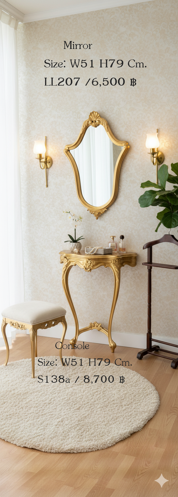 คอนโซลกระจกสไตล์หลุยส์บาร็อกมือสองฝรั่งเศส